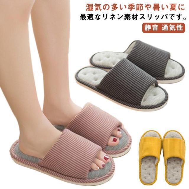 スリッパ 亜麻 リネン 室内 ルームシューズ 滑り止め オールシーズン カップル 春 夏 秋 レディース メンズ 北欧 来客用 前開き 洗える 静音 室内履き 大人用 おしゃれ 消音 シンプル 通気性 送料無料