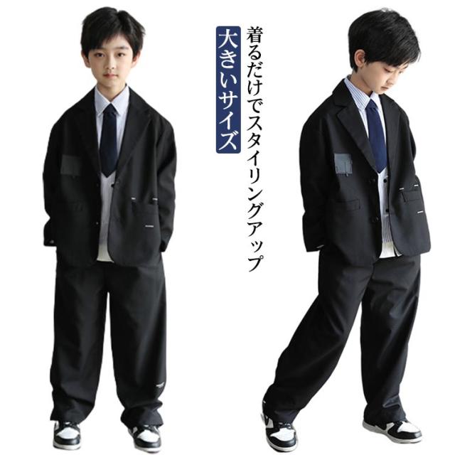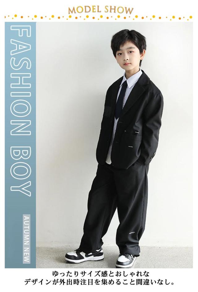 入学式 スーツ 男の子 ジュニア 卒業式 ゆったり 大きいサイズ 150 160 170 180 小学生 セットアップ フォーマル 長袖 卒園式 子供服 ダンス衣装 韓国ファッション 発表会 結婚式 120 130 140 150 160 170 180cm