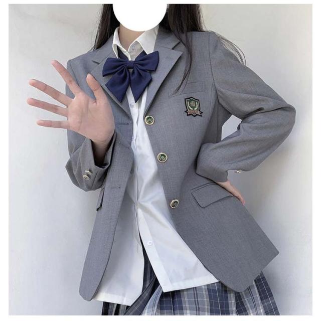 お得な5点セット! 選べる14色! 女子高生 制服ブレザー フォーマルスーツ スーツ セット 女子高校生 jk服 女子高生 スクール 制服 上下セット スカートスーツ スカート 長袖シャツ ブレザー リボン バッジ チェックスカート 春秋ブレザー