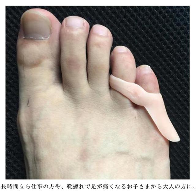 | 内反小趾用サポーター。 歩行時の衝撃を抑え、足指をやさしく保護する内反小趾補助用具です。 長時間立ち仕事の方や、靴擦れで足が痛くなるお子さまから大人の方に。 小指の痛みもやわらかくなるシリコン素材。 水洗いOKでいつでも清潔にご使用いただけます。 | |