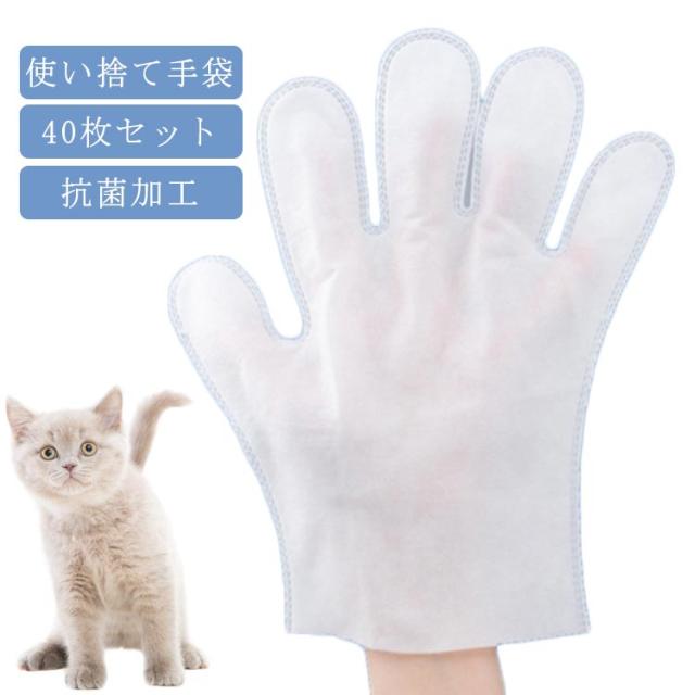 手袋 犬 猫 右手 左手 40枚 セット 手袋 使い捨て 抗菌加工 抜け毛 ブラシ 毛玉 除去 手袋 マッサージ お手入れ ペット用品 ペット グルーミング グローブ グルーミング手袋 グルーミンググローブ 犬 毛取り ペット 猫 犬 抜け毛 対策 便利 グッズ 取り毛