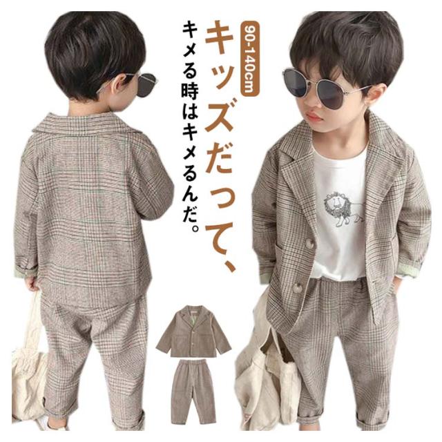 子供スーツ 男の子フォーマルスーツ 2点セット ボーイズ 子どもスーツ チェック柄 ベビー服 七五三 入園式 卒業式 入学式 卒業式 結婚式 発表会 お宮参り 誕生日 演奏会 お呼ばれ ブラウン ベージュ 90 100 110 120 130 140 送料無料