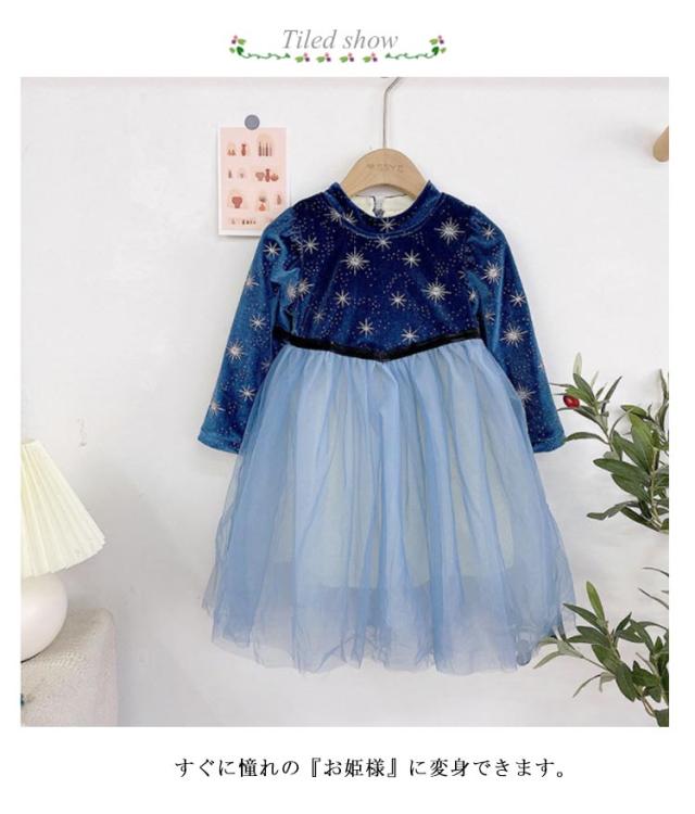 雪のお姫様 プリンセスドレス アナ雪カラー 裏起毛 あったか プリンセスドレス ドレス プリンセスランド 子供 ドレス 衣装 仮装 プリンセスドレス 発表会 パーティー お出かけ