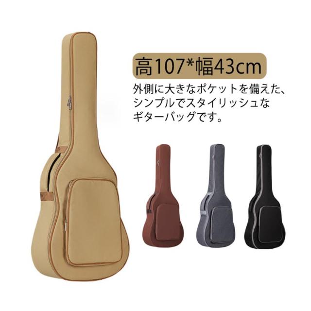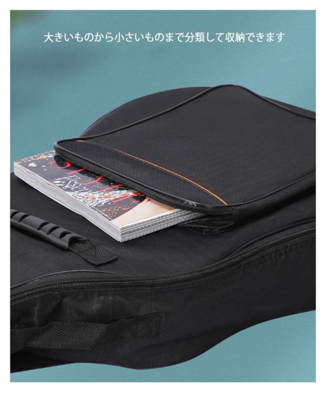 | 外側に大きなポケットを備えた、シンプルでスタイリッシュなギターバッグです。 【収納袋拡大】 楽譜、楽器アクセサリー、旅行用品などを収納可能 【収納袋2枚】 大きいものから小さいものまで分類して収納できます [ショルダーストラップ] 持ち運びが簡単で、旅行中もより快適になります 【防水・防湿】 高密度の厚みのあるオックスフォード生地、防水性と防湿性があり、雨や雪の中での旅行に同行できます。 | |