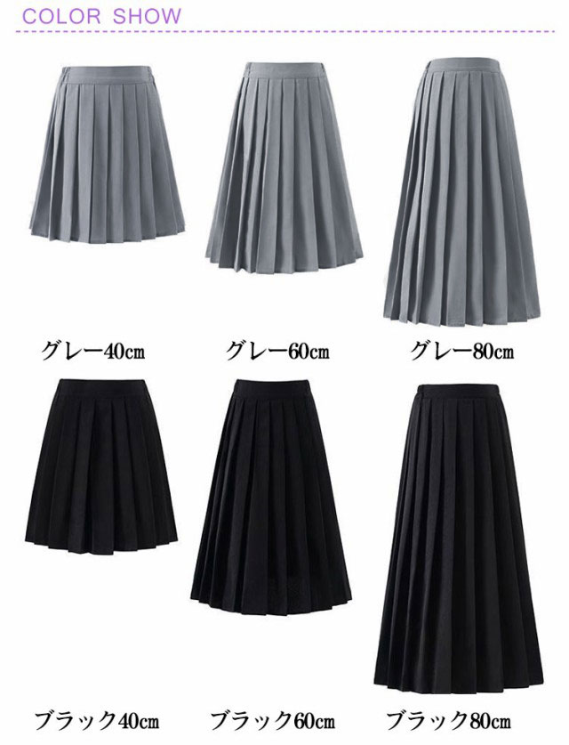 スクールスカート レディース プリーツスカート 40cm/60cm/80cm ミニ 膝丈 ミドル丈 ロングスカート フレアスカート スクールスカート 女子高校生 制服 スカート 無地 Aライン 定番 大きいサイズ 小さいサイズ 通学 通勤