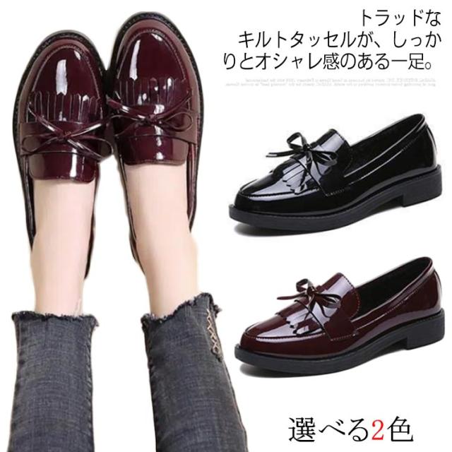 ローファー パンプス レディース カジュアル マニッシュ 厚底 厚底ヒール レディース 太ヒール バーガンディ ブラック 厚底靴 エナメル 黒 通勤 通学 オフィス 防水 シンプル カジュアル