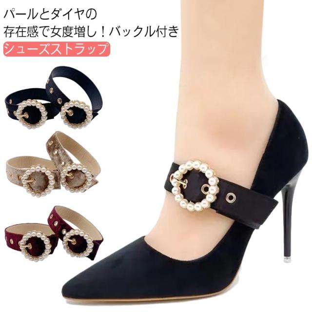 送料無料 シューズストラップ アンクレット シューズベルト パンプスベルト バックル付き シューズバンド アクセサリー パンプスストラップ 美足 アンクルストラップ 1ペア 脱げ防止 パンプスベルト おしゃれ パール シューズベルト 長さ調節可