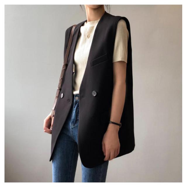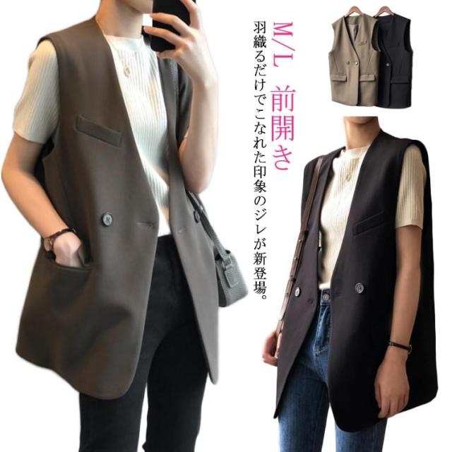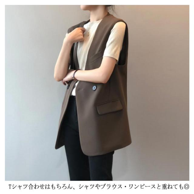 テーラードベスト スーツベスト ジレ 送料無料 レディース 春 夏 ロング キレイめ ベスト ロングベスト テーラード ノースリーブ シンプル 羽織り 前開き 無地 通勤 きれいめ 黒 モカ 茶色 M L 20代 30代 40代