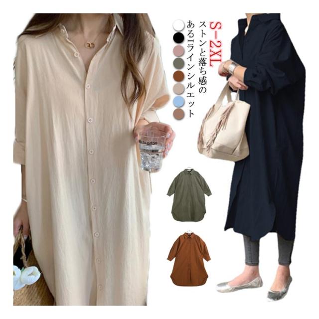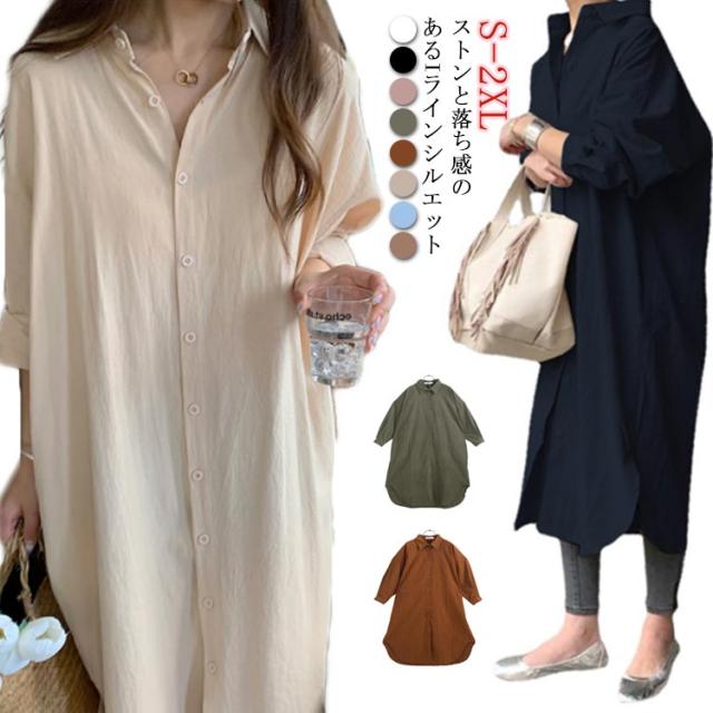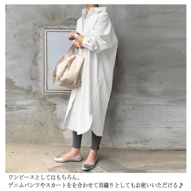 ロングシャツワンピース マキシワンピース ロングワンピース 送料無料 シャツワンピース 秋 春 ワンピース マキシ ロングガウン レディース カーディガン サマーアウター カジュアル ナチュラル ロング丈 マキシ丈 長袖 ドロップスリーブ 体型カバー スリット