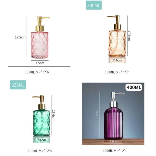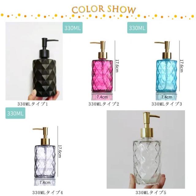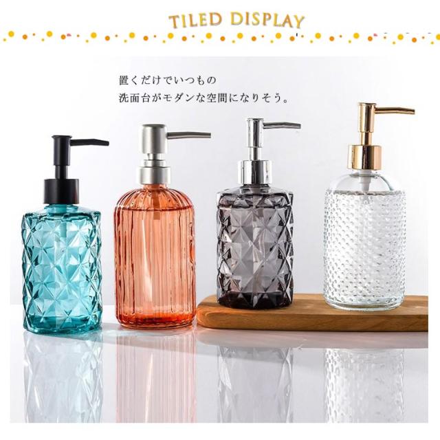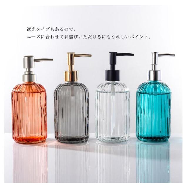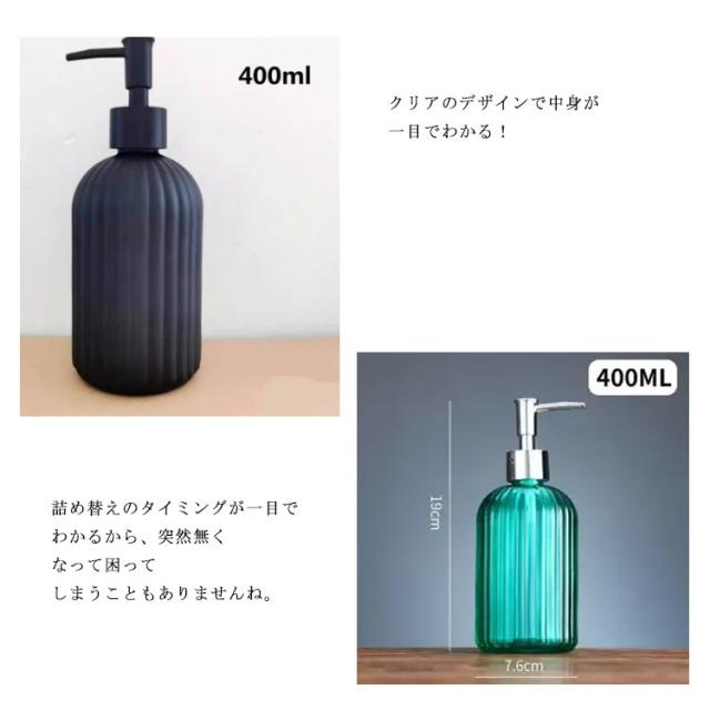 | シンプルなボトルで整えられる、詰め替え用ディスペンサーセット 清潔感のあるセンスの良い空間を演出してくれる。置くだけでいつもの洗面台がモダンな空間になりそう。 クリアのデザインで中身が一目でわかる!詰め替えのタイミングが一目でわかるから、突然無くなって困ってしまうこともありませんね。 遮光タイプもあるので、ニーズに合わせてお選びいただけるにもうれしいポイント。 ご家庭用はもちろん、お店などのゲスト用にもおすすめ♪ | |