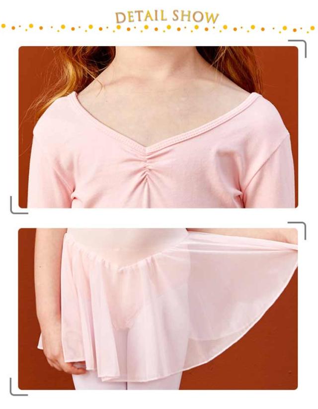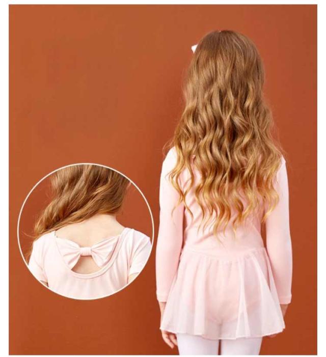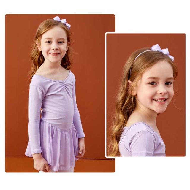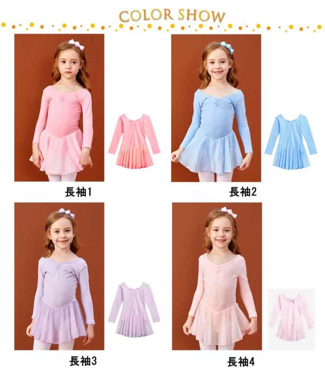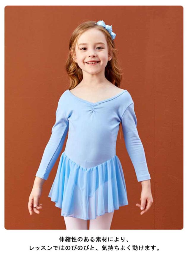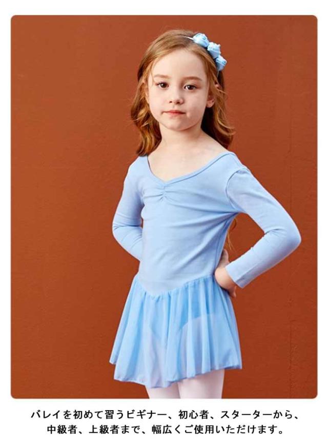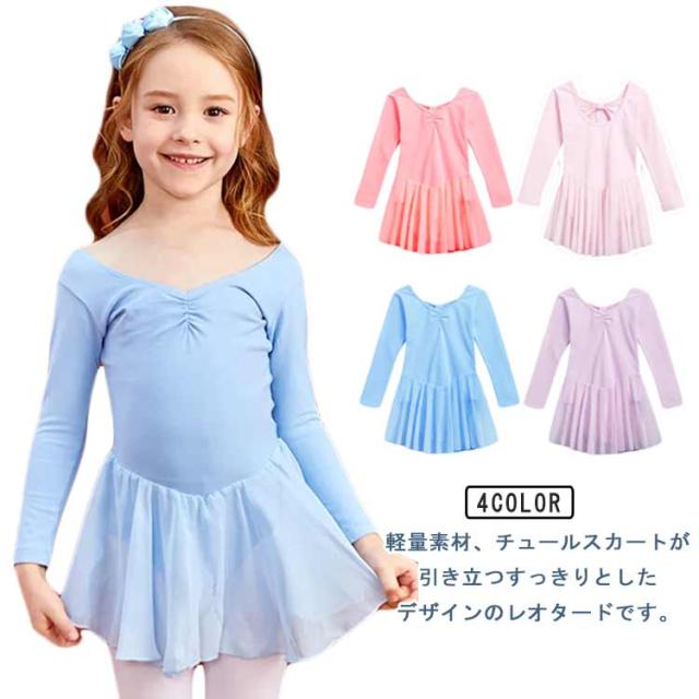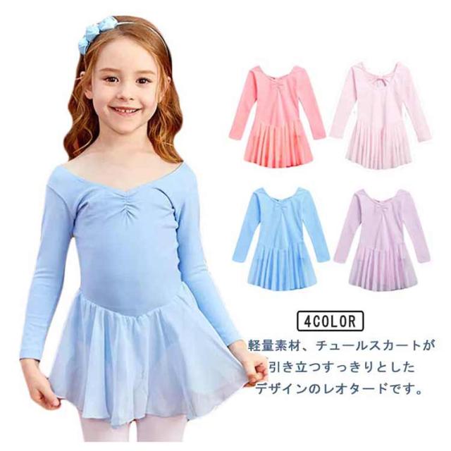 美背バックリボンデザイン!子供 レオタード バレエ 紫 長袖 キッズ ジュニア かわいい スカート付き 股下開き 子ども ダンス 衣装 ダンスウェア バレエ用品 体操 ブルー ピンク 105 110 120 130 140 150 160 170cm