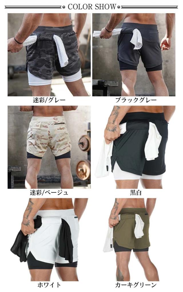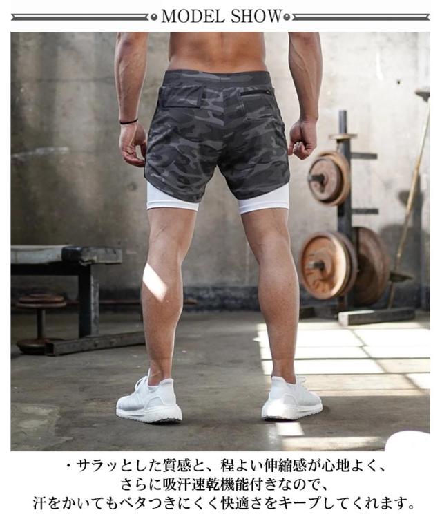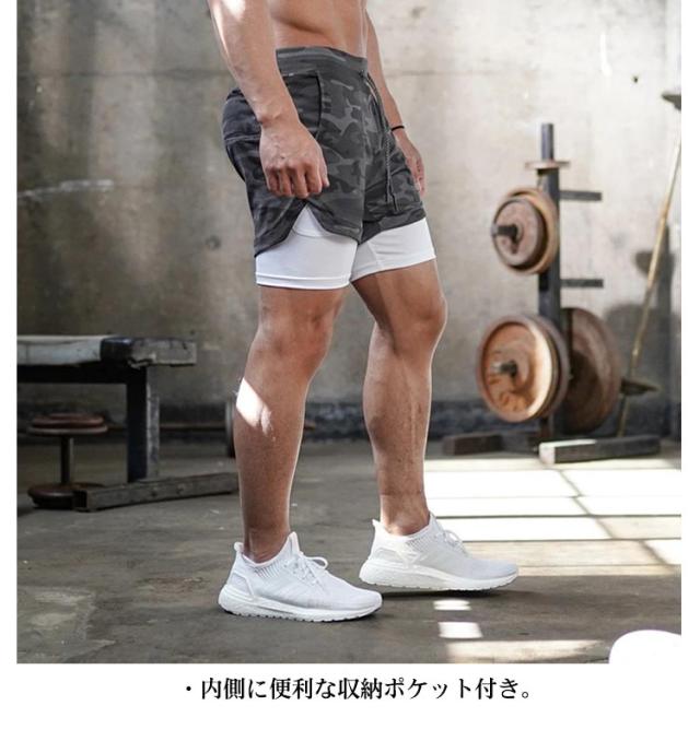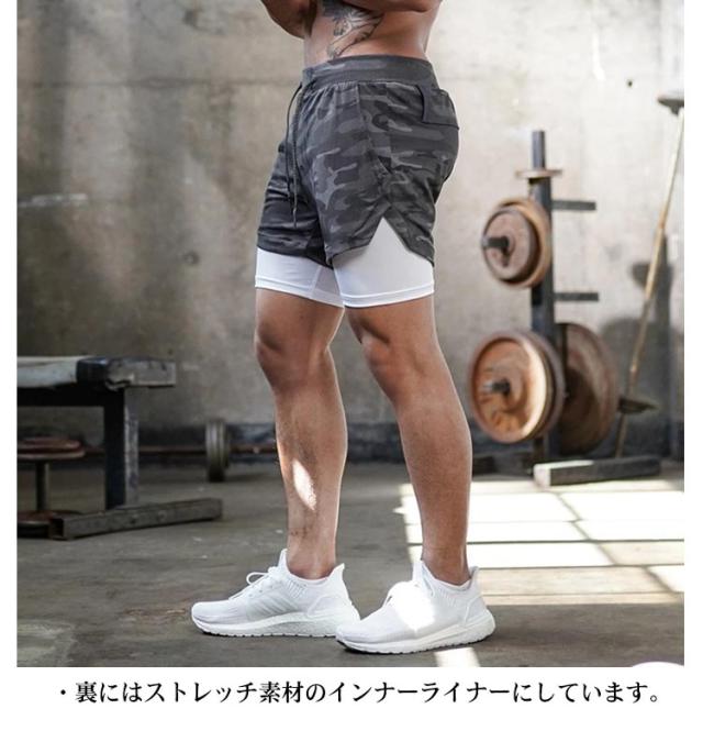 ショートパンツ メンズ ライナーショーツ ジム スポーツウエア ハーフパンツ ポケット付き タオルループ付き ストレッチ ランニングパンツ 筋トレ トレーニング フィットネス 通気 部屋着 アウトドア 大きいサイズ 全6色 無地 迷彩柄