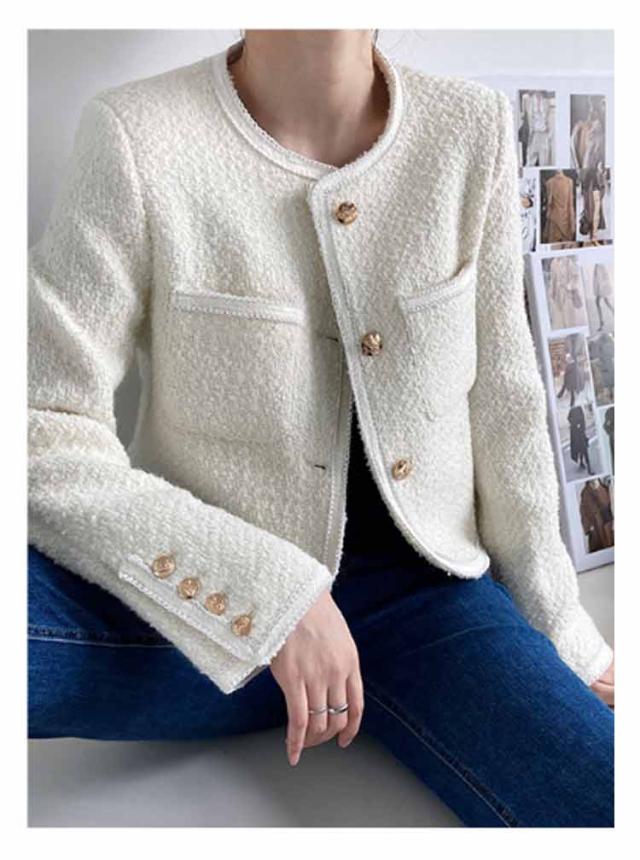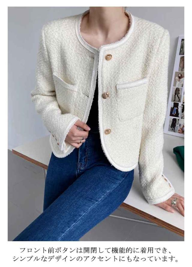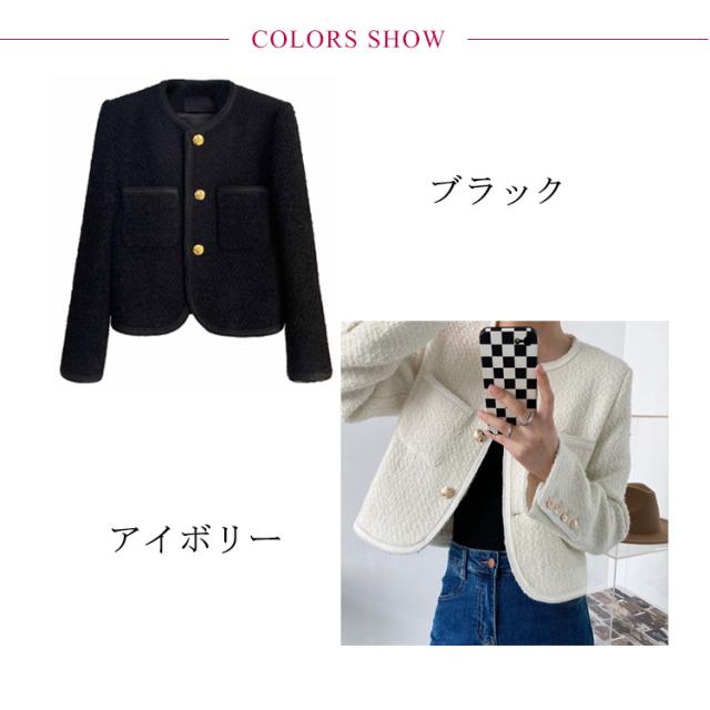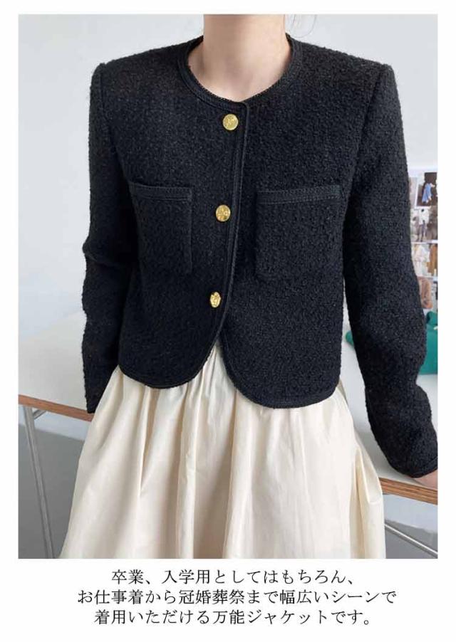 ツイードジャケット レディース ノーカラー 長袖 ジャケット ツイード コート 入園式 卒園式 入学式 フォーマル スーツジャケット アウター ショート丈 羽織り 裏地あり エレガント きれいめ おしゃれ オフィス 通勤 卒業式 ママスーツ 結婚式 ゆったり 春 秋 送料無料