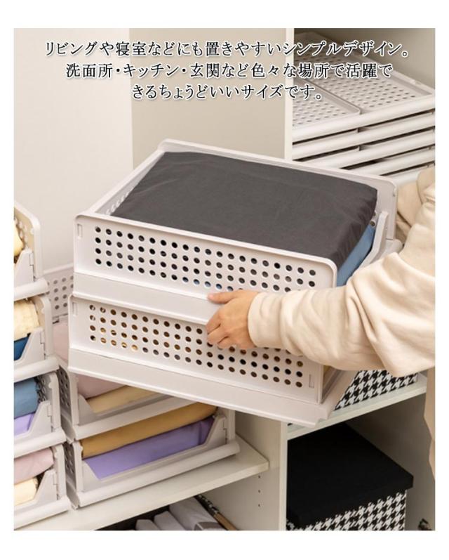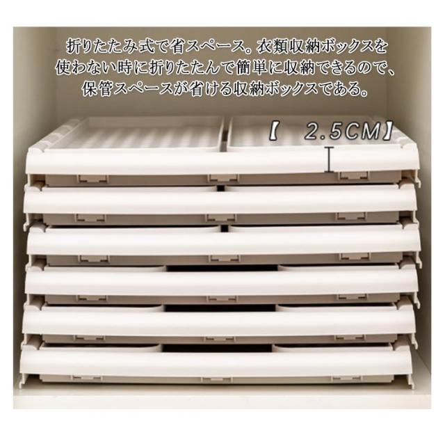 | 折りたため・スライド式衣類収納ケース。 オープンタイプで何が収納してあるか一目で見えるから探し物がすぐに見つかる。 スライド式なので、重ねた状態でも、スムーズにスライドでき、下段の衣類が取り出しやすく、崩れることなし。 高密度のポリプロピレンを採用して、強度も抜群。変形しにくく耐久性も持っています。 折りたたみ式で省スペース。衣類収納ボックスを使わない時に折りたたんで簡単に収納できるので、保管スペースが省ける収納ボックスである。着脱可能なフレームのため、引出の増減が可能です。 通気穴の設計で、湿気を簡単に放出させるので、服の乾燥性と快適性を保ちます。クローゼット収納だけでなく、キッチンやお風呂等のところにも適用します。 リビングや寝室などにも置きやすいシンプルデザイン。洗面所・キッチン・玄関など色々な場所で活躍できるちょうどいいサイズです。 | |