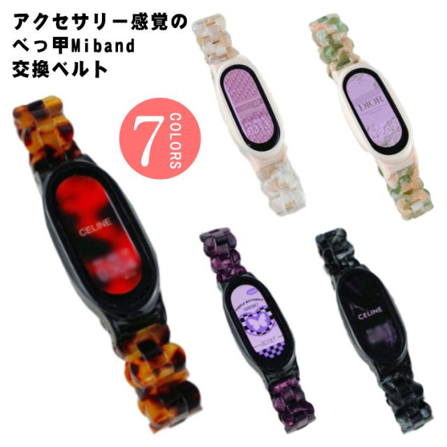 Xiaomi Miband7 Miband6 miband5 miband4 miband3 交換ベルト 樹脂 べっ甲風 交換バンド Mi Band 7/6/5/4/3 対応 Mi スマートバンド 替えバンド 替えベルト ケース 一体型 軽量 交換用 バンド バンド7 バンド5 バンド6 オフィス 通勤 通学 送料無料