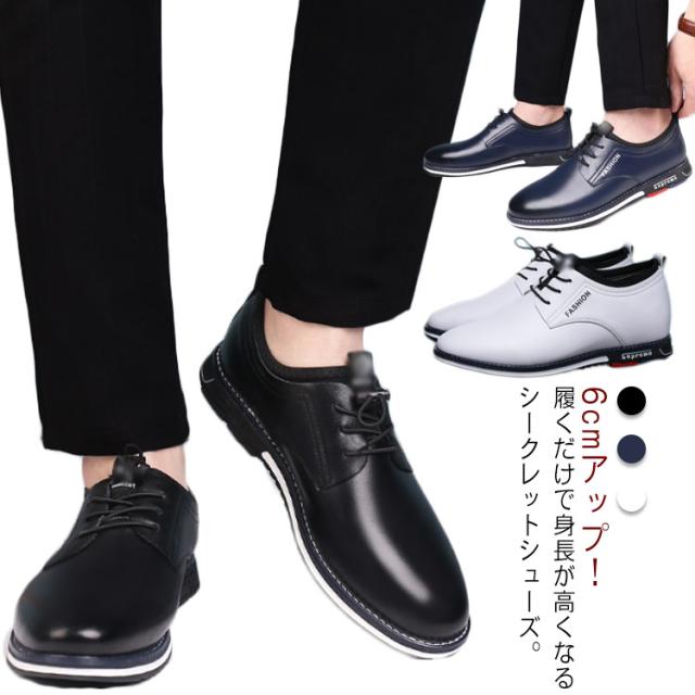 シークレットシューズ 6cmアップ スニーカー メンズ ビジネス シューズ 紳士靴 結婚式 革靴 カジュアルシューズ 柔らか インヒール 快適 背が高くなる 靴 カジュアル 入学式 卒業式 仕事用 歩きやすい 通気性 23.5-26.5cm