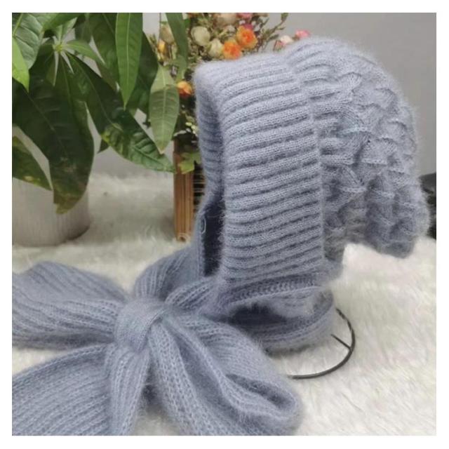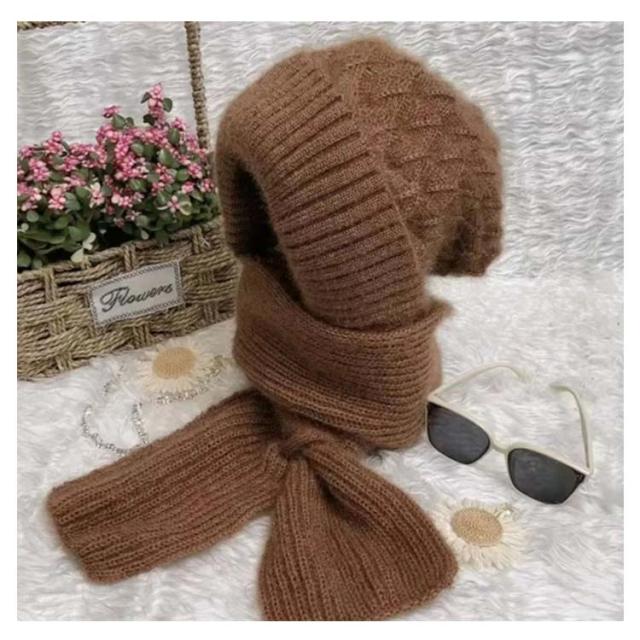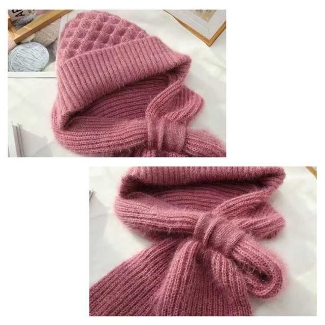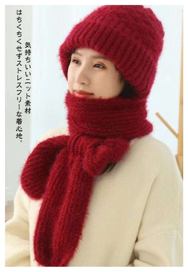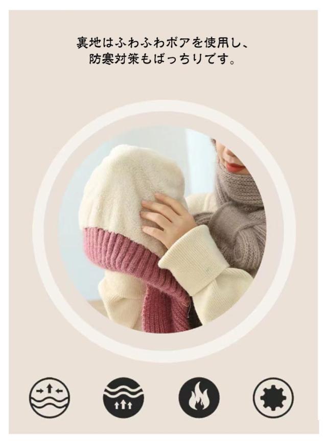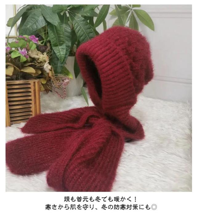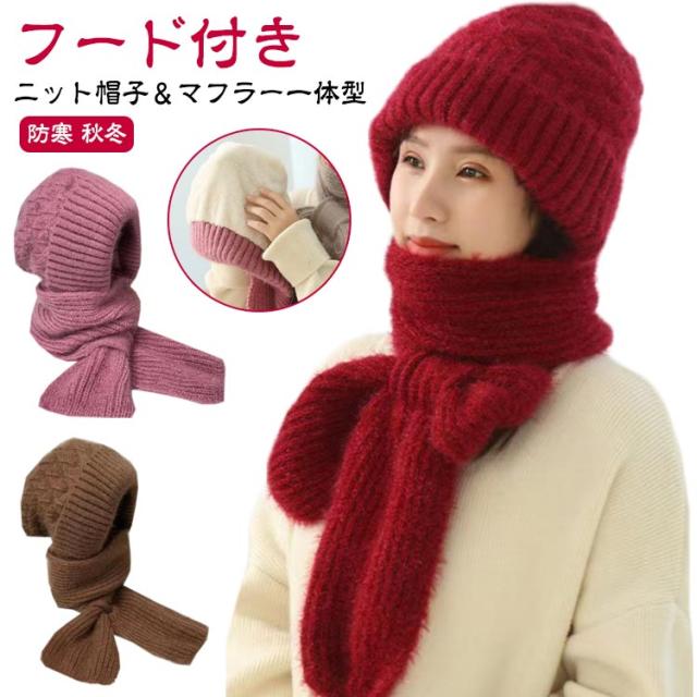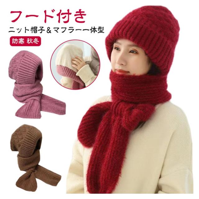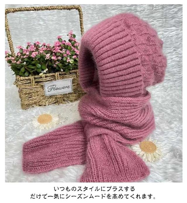 ニット帽子&マフラー一体型 裏ボア ニット帽子 ニットマフラー ニットバラクラバ おしゃれ レディース ネックウォーマー フード付き 防寒 ニットフーディー ニット フードウォーマー フード マフラー バラクラバ 秋冬 付けフード 防寒 スキー 自転車 あったか 送料無料