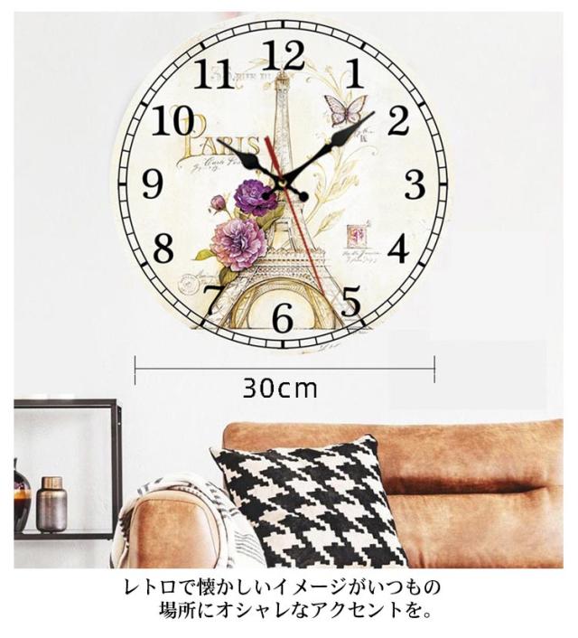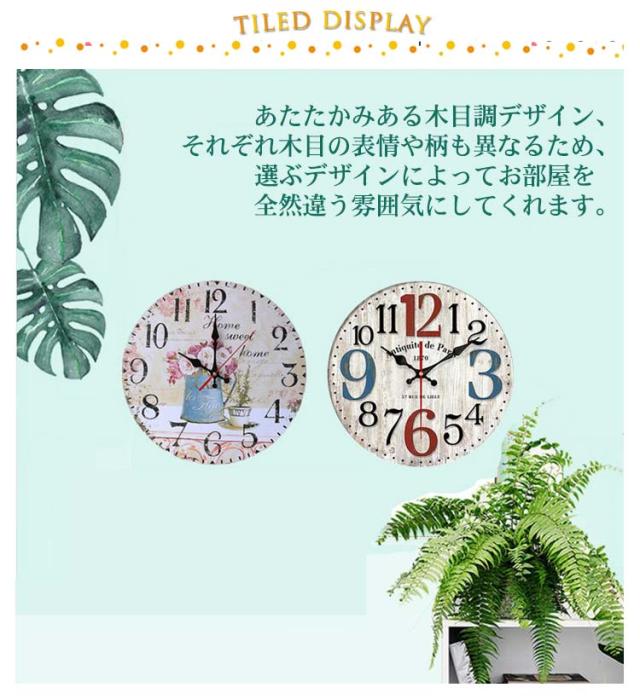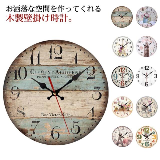 壁掛け時計 時計 木目調 木製 北欧 ビンテージ クロック かちかち 音がしない 静音 掛時計 かけ時計 レトロ クオーツ カフェ 西海岸風 アメリカン インテリア アンティーク ウオール時計 新築祝い 結婚祝い 開店祝い