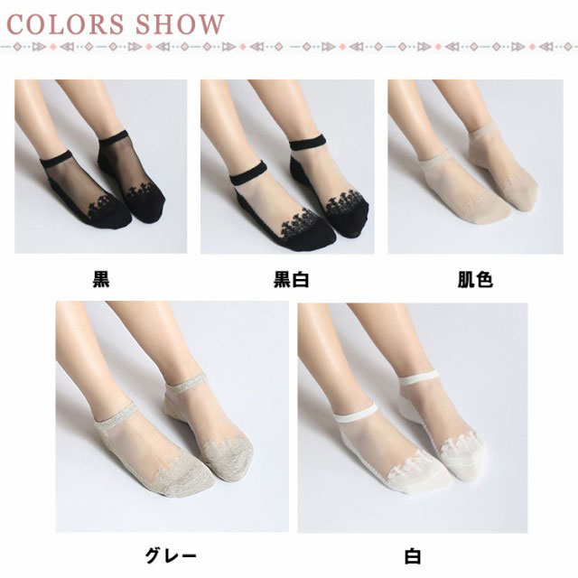 | シースルーで春から夏にかけておすすめのソックスを全5色ご用意いたしました いつものパンプスやサンダルを、とっても可愛く見せてくれること間違いなしなラブリーソックスです ●おすすめポイント 《1》大人気のシースルー素材のソックス★ 《2》透け感のあるシースルーのソックスは今年も大人気★ 《3》どんなスタイルにもフェットするシースルーソックスは要チェック★ | |