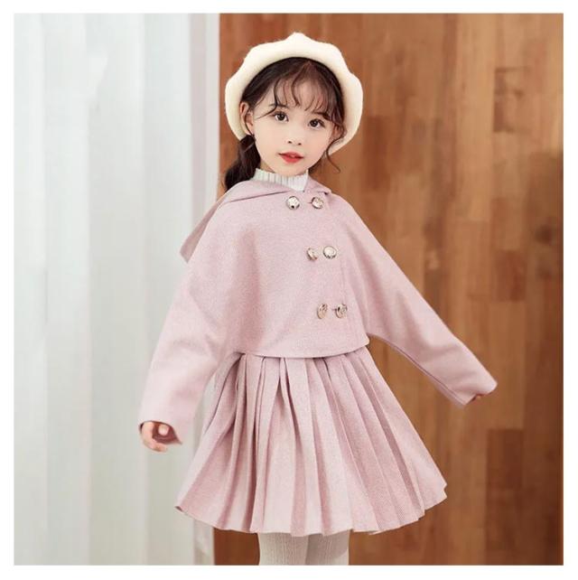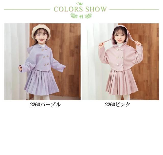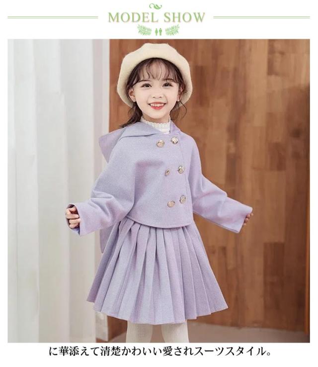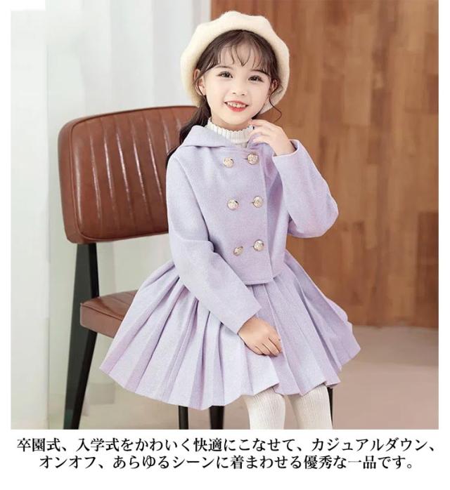 ダッフルコート プリーツスカート スーツ フォーマル 子供服 女の子 キッズ ダッフルコート ジャケット アウター フードコート ショートスカート プリーツスカート セットアップ 子供スーツ ジュニアスーツ フォーマルスーツ 卒業式