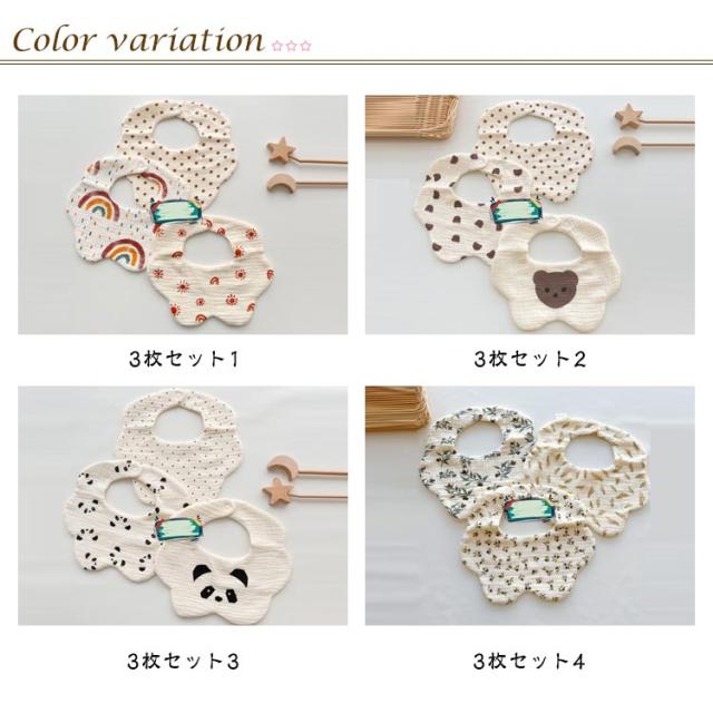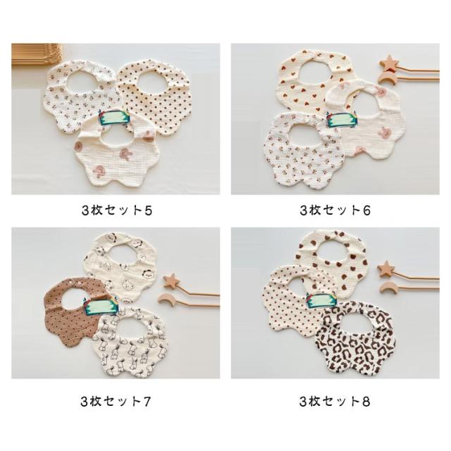 スタイ おしゃれ 男の子 女の子 おしゃれ 3枚セット かわいい 360° ガーゼ 22*25cm よだれかけ スタイセット お食事エプロン ベビー 赤ちゃん ビブ 前かけ bib 綿 コットン 6重ガーゼ 新生児 出産祝い 保育園 入園準備 プレゼント ギフト おしゃれ 送料無料
