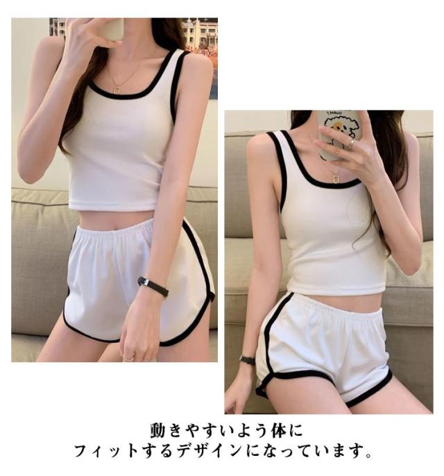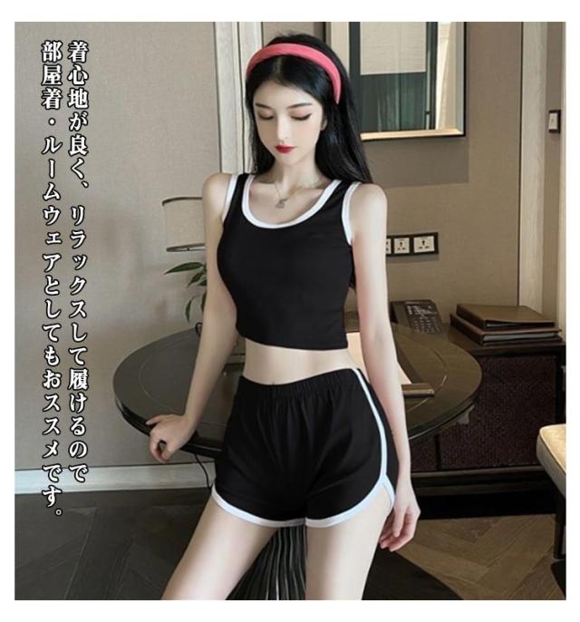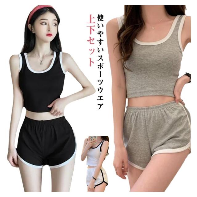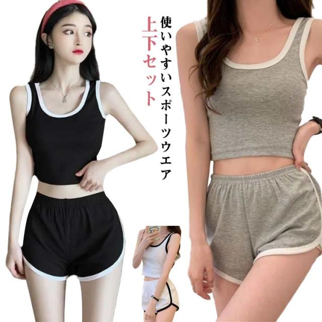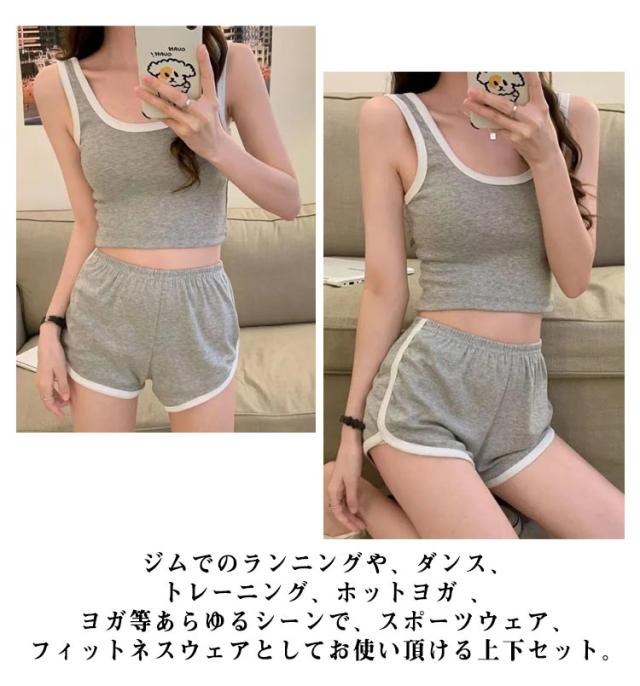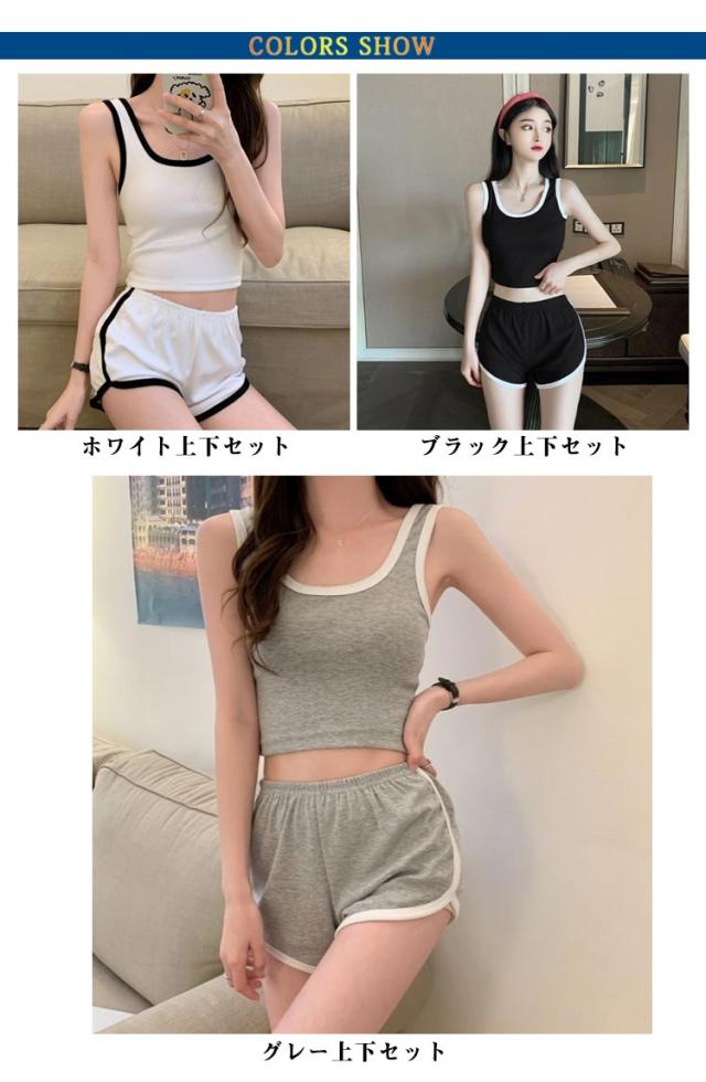 スポーツウエア 上下セット レディース ルームウエア キャミソール ショートパンツ セットアップ 部屋着 ハーフパンツ 秋 夏 春 スウェット ジム ヨガウエア 運動 スポーツ グレー ブラック ホワイト 送料無料 快適 ウエストゴム 無地 シンプル