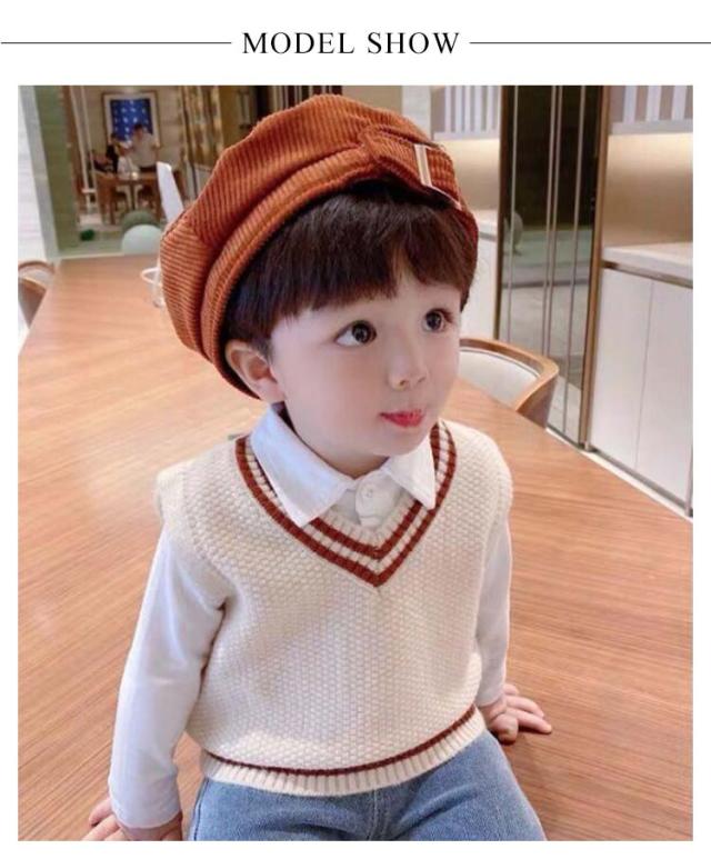 【送料無料】キッズ ニットベスト Vネック 配色 ライン スクールベスト 子供服 赤ちゃん 男の子 女の子 ニット ベスト プルオーバー トップス ベビー服 通園 保育園 入園 小学生 80 90 100 110 120 カジュアル