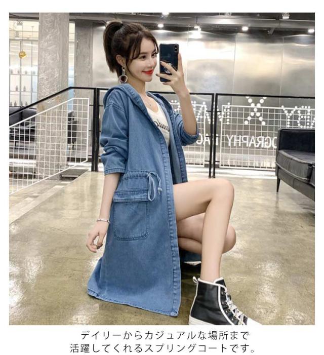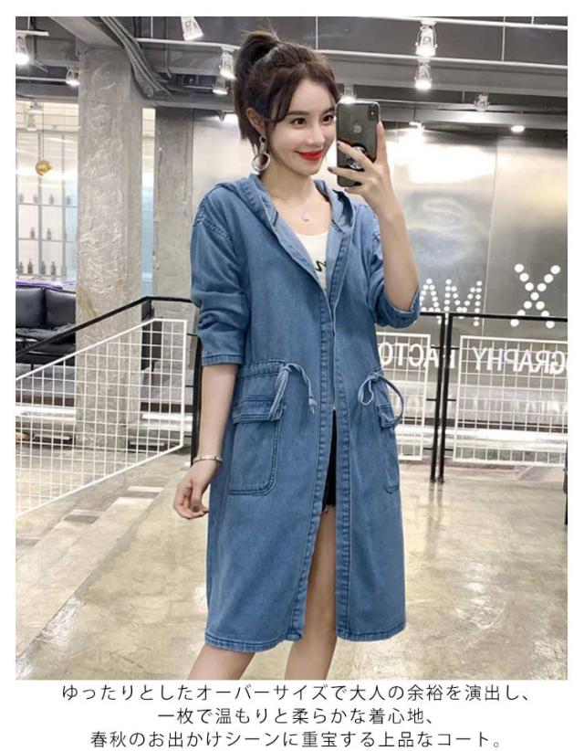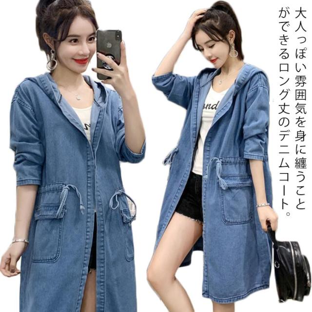 デニムジャケット レディース ロング丈 ジャケット ロングコート フード付き デニム ジャケット Gジャン アウター ジージャン ゆったり カジュアル 上品 大きいサイズ M L XL 2XL 3XL 4XL