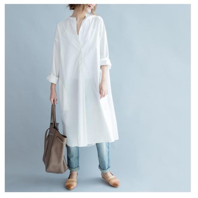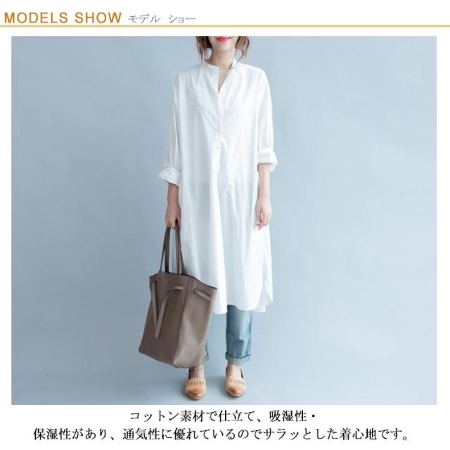 ロングシャツワンピース シャツワンピース 送料無料 ロング ロングシャツ レディース 白 ロング丈 コットン ワンピース ゆったりワンピ 春夏 無地 スリム効果 スリット シンプル カジュアル 大きいサイズ 長袖 UVカット 体型カバー