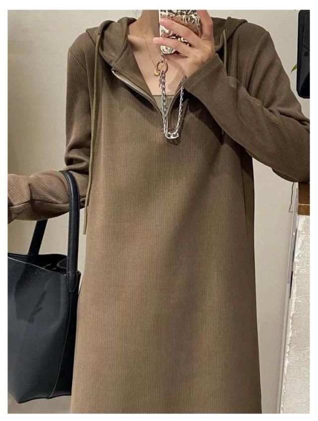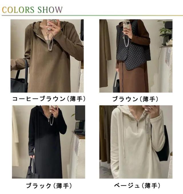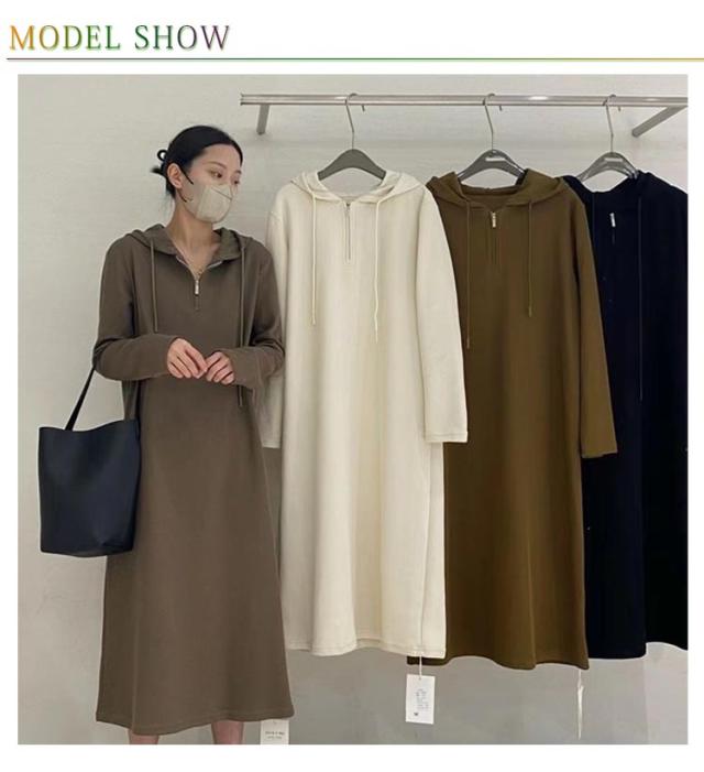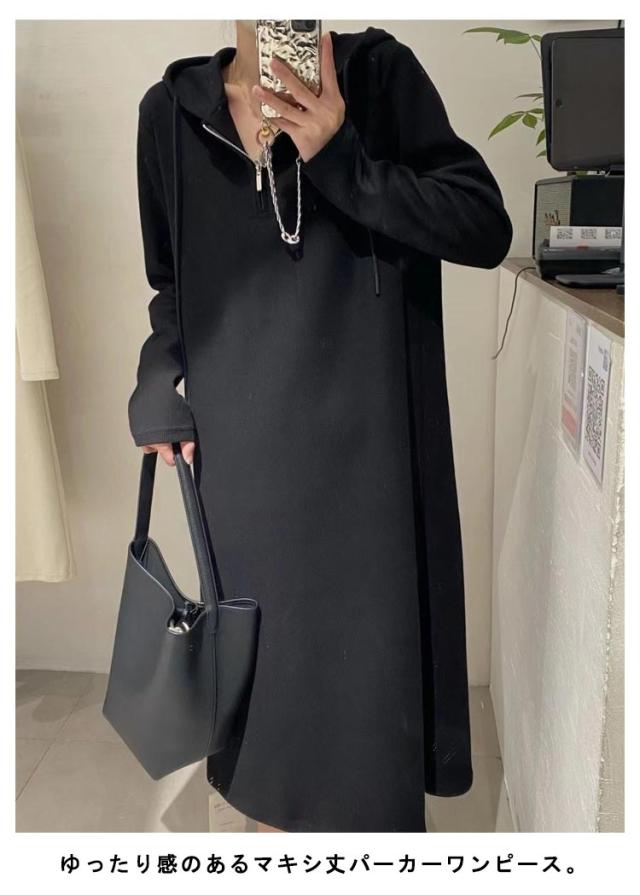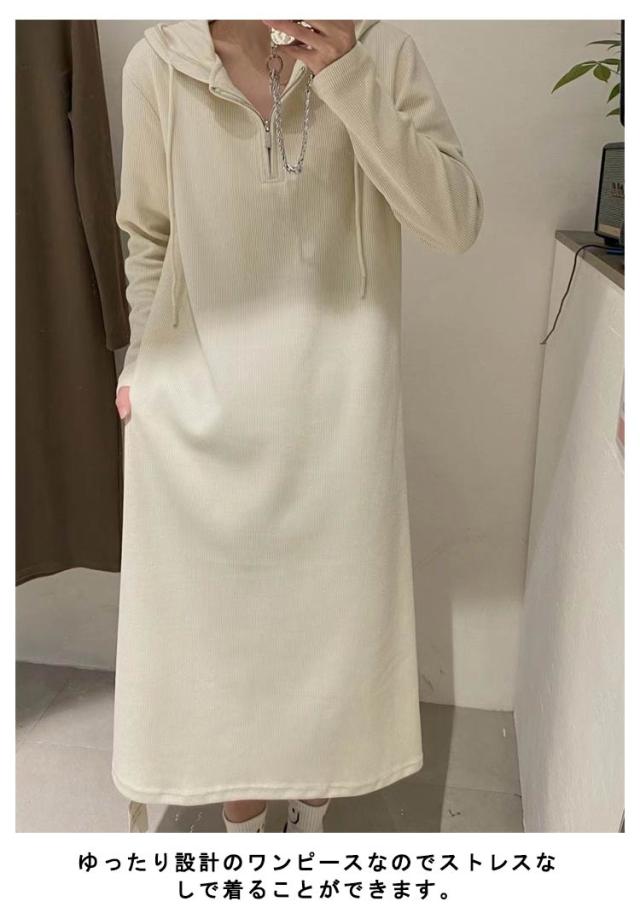フード付き ワンピース 長袖 ロングワンピース レディース 春秋 パーカーワンピース 薄手 カジュアル ゆったり ハーフジッパー 大きいサイズ 体型カバー きれいめ おしゃれ マタニティ 妊婦 無地