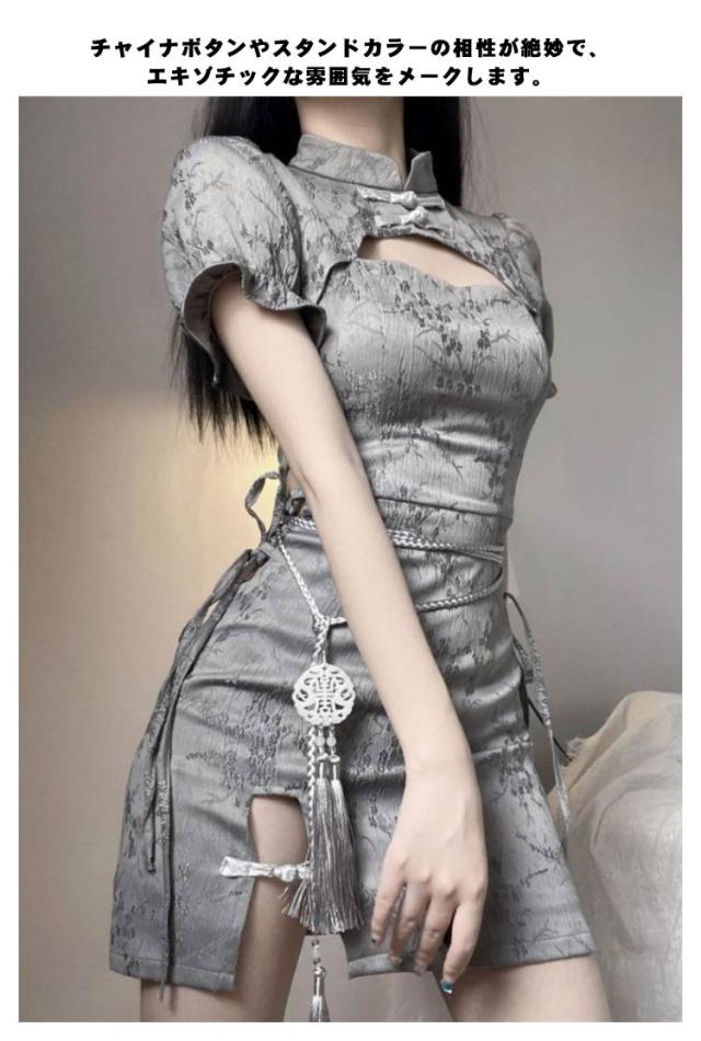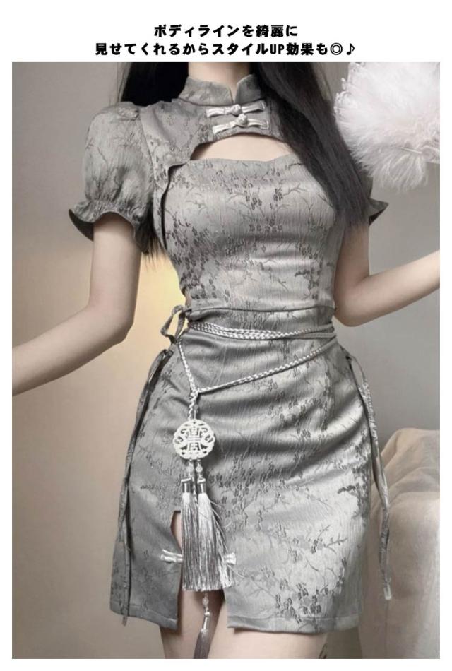 チャイナドレス セクシー 着痩せ パーティードレス チャイナ風 半袖 ワンピース ハイウエスト タイトスカート スリム ストレッチ エレガント ベルト付き オシャレ かわいい チャイナ服 忘年会 仮装 コスチューム コスプレ イベント パーティ 結婚式 送料無料 S-XL