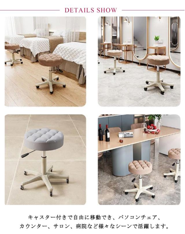 | キャスター・昇降式・360度回転・背もたれ付きスツール。 座面は昇降可能で好きな高さに調整してお使いいただけます。 キャスター付きで自由に移動でき、パソコンチェア、カウンター、サロン、病院など様々なシーンで活躍します。 座面は疲れを防止するウレタン入りで、長時間座っても安心。 また、座面が360度回転するので、座ったままでも方向転換がスムーズに行えます。 座面の張地には合成皮革を使用。傷や水に強く、お手入れが簡単なのも特徴。 リビングやオフィス、サロン等、お部屋を高級感あふれる空間に演出します。 | |