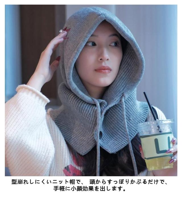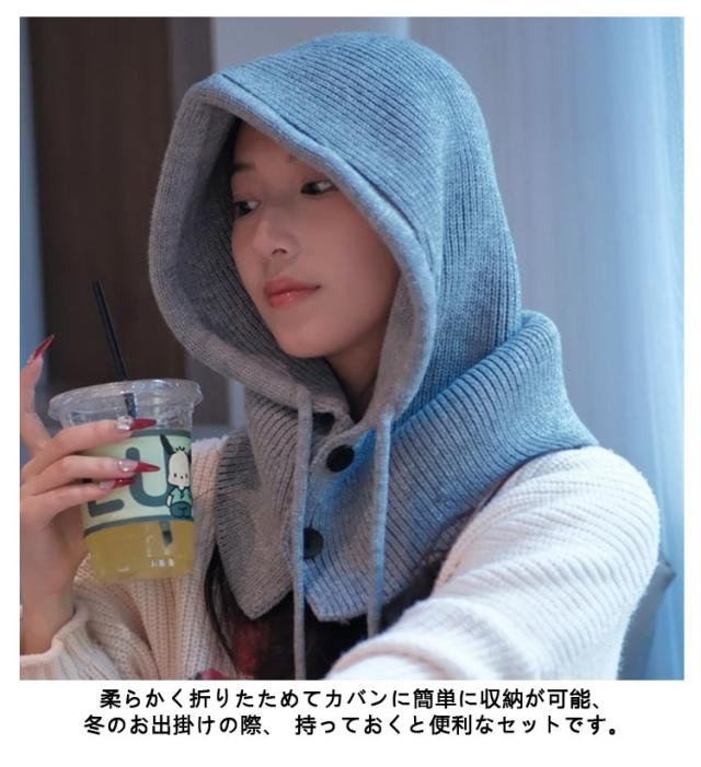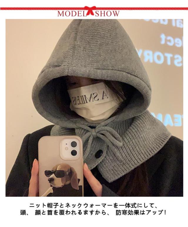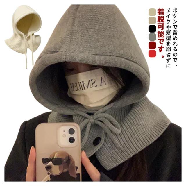 バラクラバ ニット 帽子 かわいい ニット帽 レディース 韓国 おしゃれ くすみカラー フード付き ネックウォーマー フードウォーマー あったか 防寒 自転車 スキー 暖かい 防寒対策 秋 冬