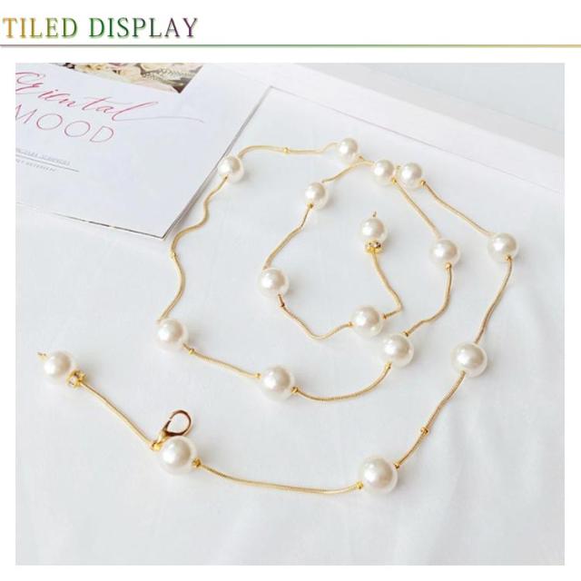 | 大人おしゃれスタイルには欠かせないパールベルト。 華やかなベルト着るだけでゴージャスな印象にオールシーズン使えるので、1つは持っていてたいアイテム。 ニットやワンピやチュニックなどに合わせて、その日のファッションのアクセントや差し色に。 何本か持っていれば、いろんなコーデの強い味方に。 | |