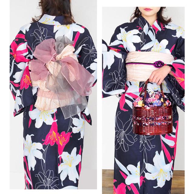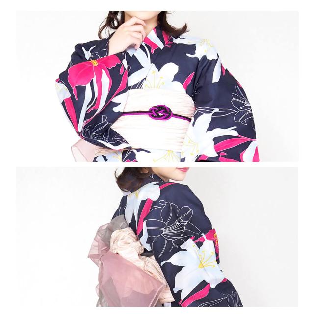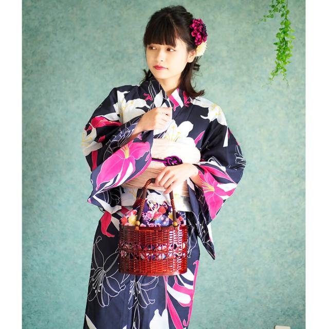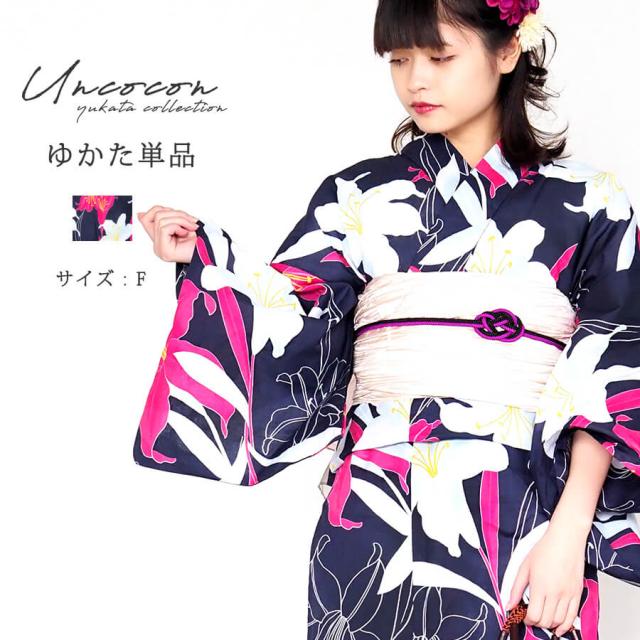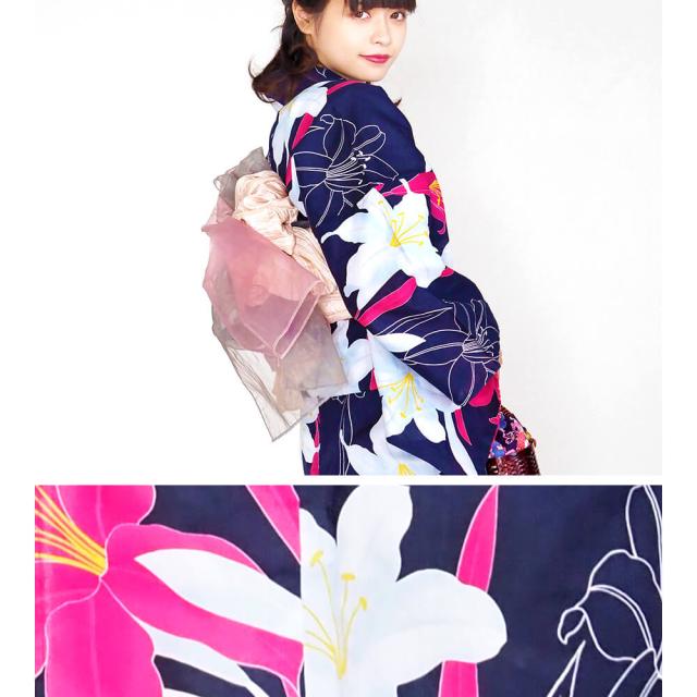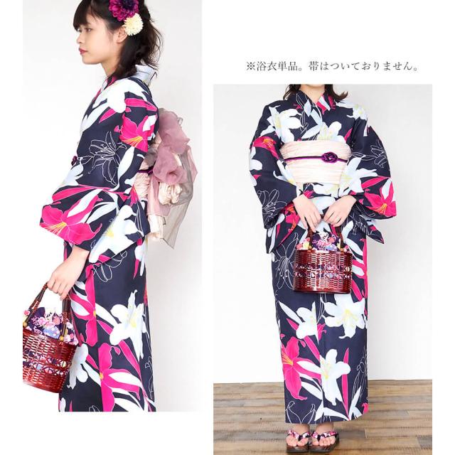 浴衣 レディース 女性浴衣 単品 浴衣単品 仕立て上がり 浴衣レディース 女性用 百合 ユリ リリー ネイビー 紺 花柄 お洒落