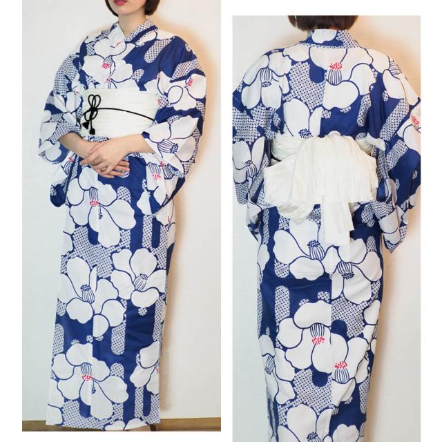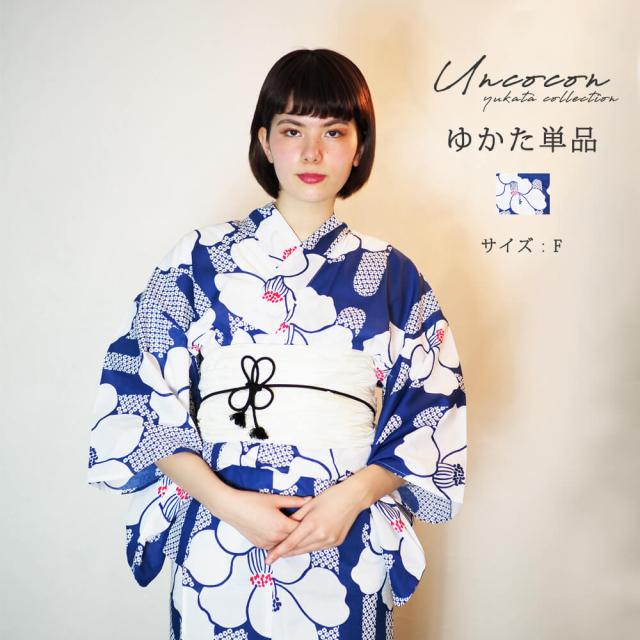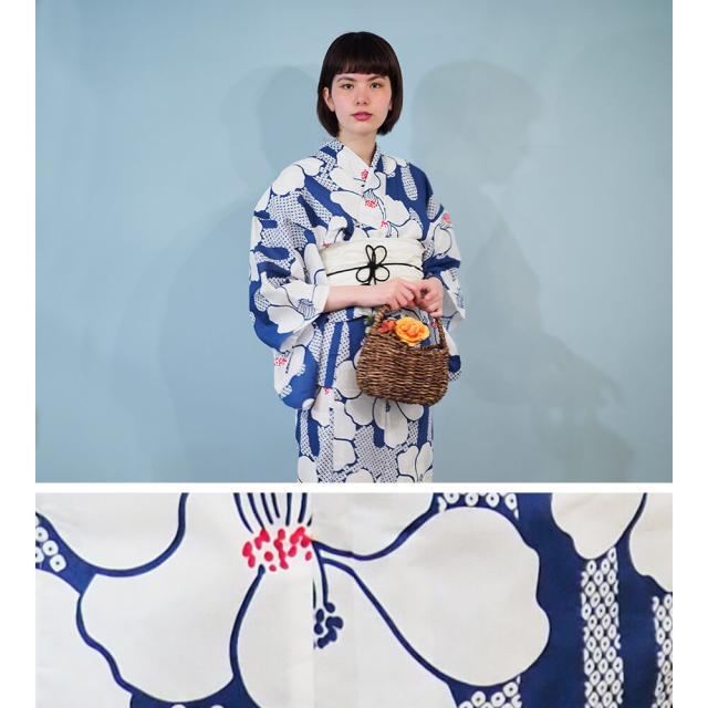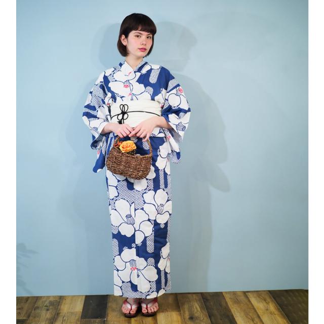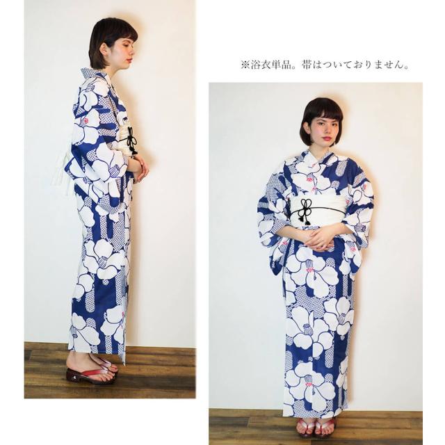 浴衣 レディース 女性浴衣 単品 浴衣単品 仕立て上がり 浴衣レディース 女性用 椿 ブルー 青 花柄 お洒落 可愛い レトロ