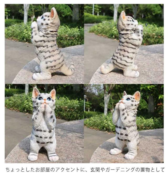 | 奇なポーズの立姿が可愛い子猫の置物です。 何にお願いしている姿が最高にかわいいです。 ネコちゃんの仕草、表情など、良く作られていて雰囲気抜群です。 ちょっとしたお部屋のアクセントに、玄関やガーデニングの置物として 細部まで拘った作りで本物趣向の方にも満足出来る世界を演出しています。 | |
