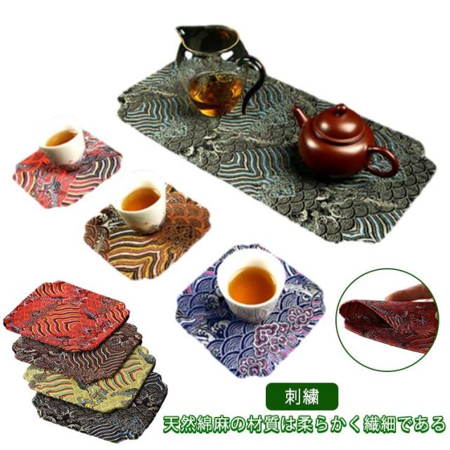ランチョンマット 布 小さめ レトロ ティーマット 刺繍 和風 コースター インテリア 茶道 ダイニング ティーマット