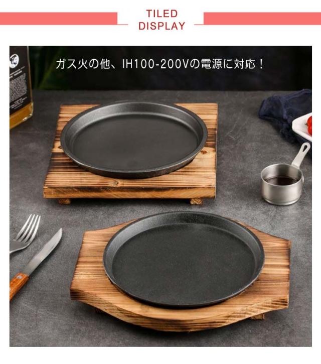 ステーキ皿 大判 魚焼き グリル IH対応 楕円形 木台付き 家庭 鉄板 焼そば ガス火 ハンバーグ 皿 お皿 鉄鋳物製 ステーキ プレート 鉄板 料理 調理 レストラン ステーキ調理器具 安い 業務用