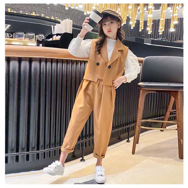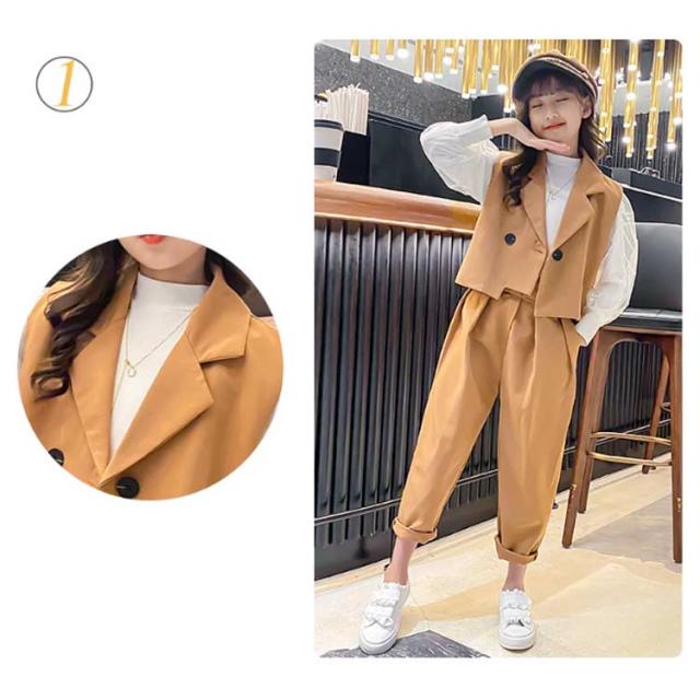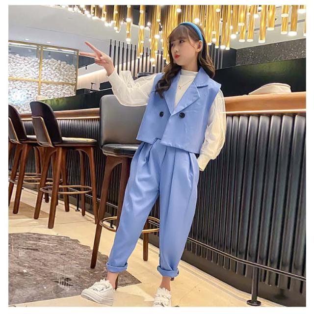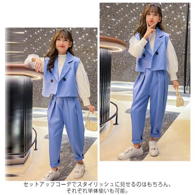 卒業式 スーツ パンツスーツ 女の子 フォーマルスーツ 3点セット ベスト ブラウス 長袖 パンツ 子供服 子供スーツ 小学生 卒服 ゆったり 大きいザイズ カジュアル 無地 おしゃれ 春 秋 入学 卒業 卒園 入園 発表会 七五三 結婚式 記念 お受験 送料無料