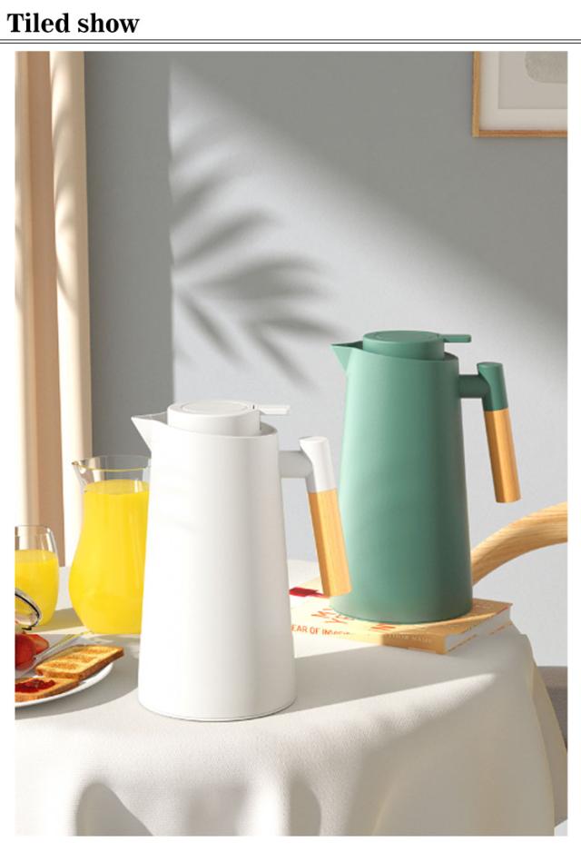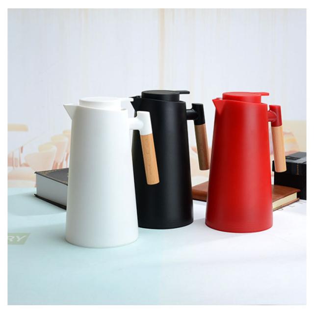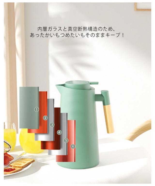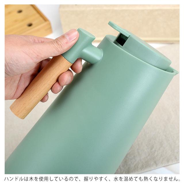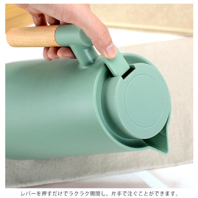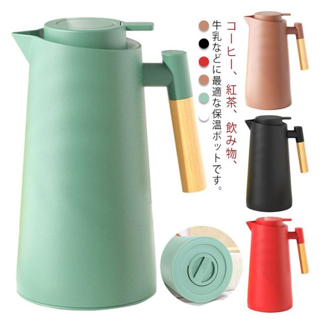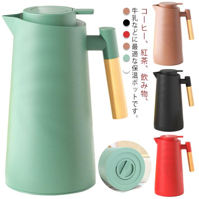 卓上ポット 魔法瓶 テーブルポット 木製ハンドル 保温 保冷 お洒落 1000ml 大容量 注ぎやすい お茶 コーヒー 紅茶 カフェ 家庭用 業務用 無地 開閉簡単 送料無料