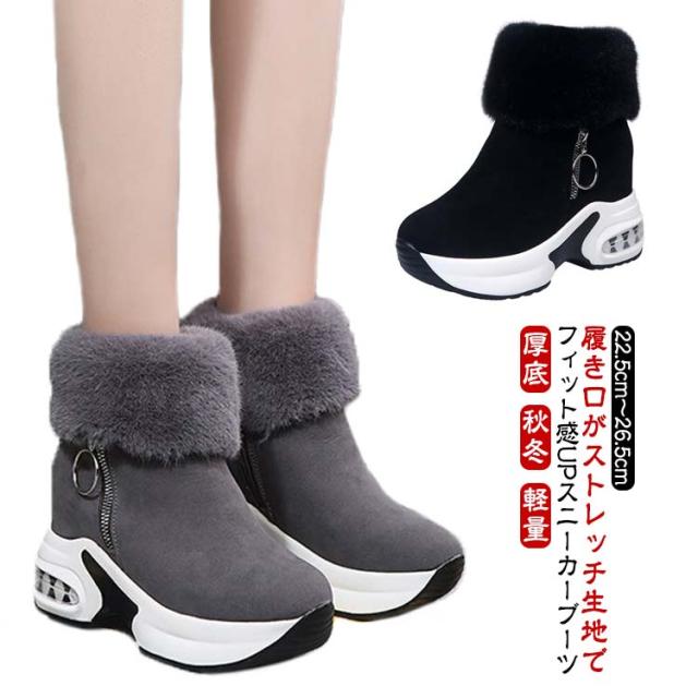 ブーツ レディース 厚底 ショートブーツ 靴 シューズ ブーツ レディース ボア スエード ゆったり 幅広 ブーツ ウエッジソール 歩きやすい 厚底 スニーカー ブーツ 履きやすい レディース 快適 ストレッチ ブラック ブラウン 秋冬 クッション ジッパー ショートあったか