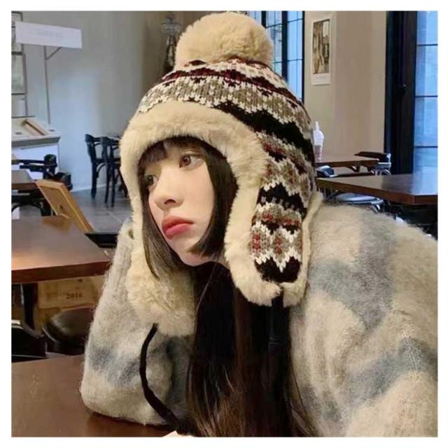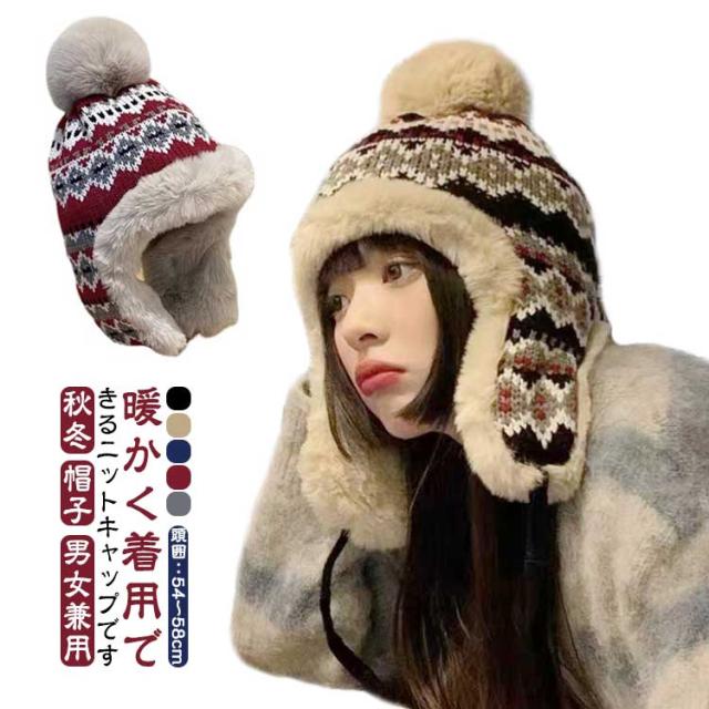 秋冬 暖かいウール 耳あて ニットキャップ キャップ レディース デザイン カジュアル 帽子 かわいい 男女兼用 ニット帽 ニットキャップ 帽子 イヤーフラップ 耳あて 耳付き メンズ レディース スキー スノーボード スノボ あったかい 暖かい