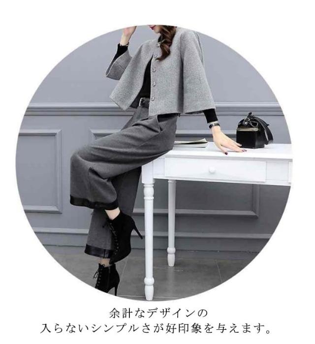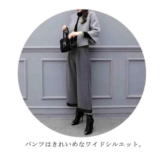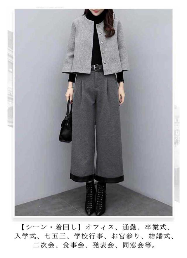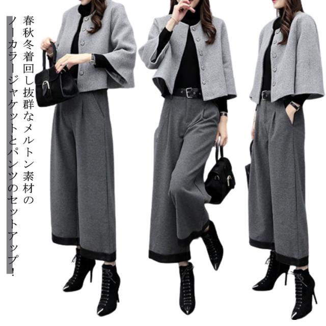 パンツスーツ 春 秋 レディース セットアップ セレモニー スーツ きれいめ 結婚式 ノーカラージャケット ワイドパンツ フォーマル 卒業式 入園式 入学式 卒園式 ママスーツ 母 コート 40代 50代 メルトン 大きいサイズ 【送料無料】