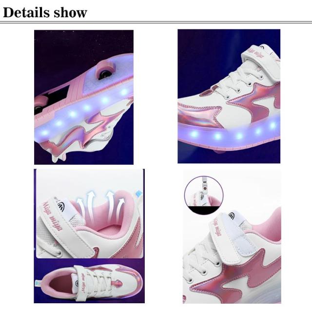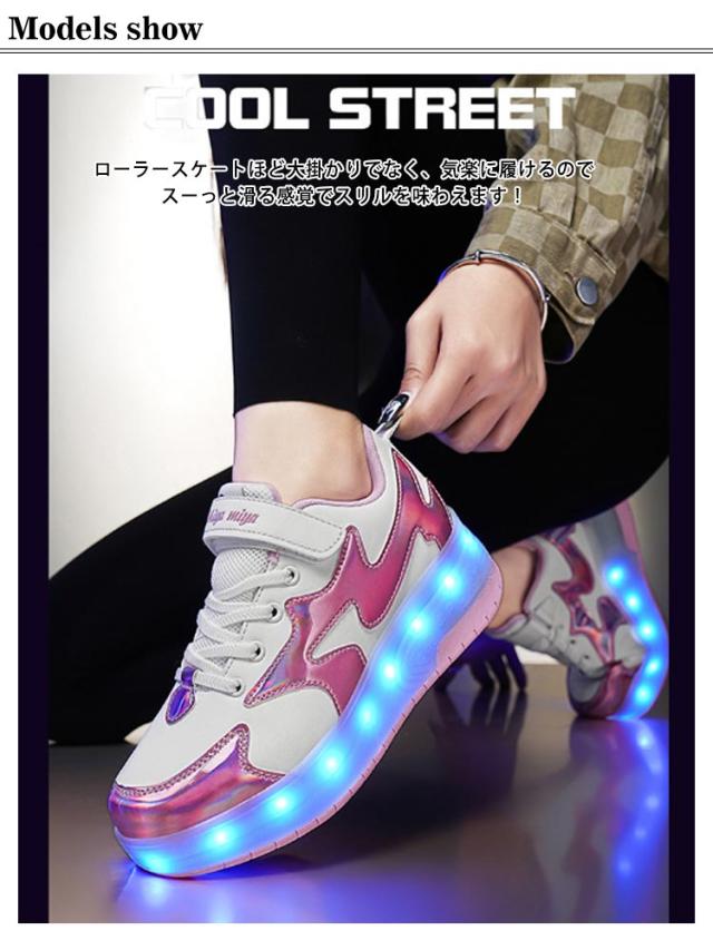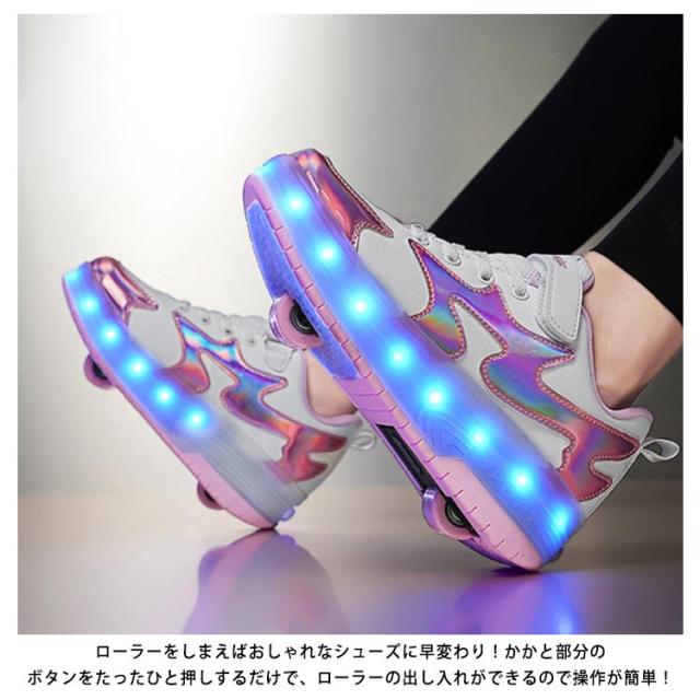 ローラーシューズ ローラースケート 光る キラキラ 2輪式 キッズ 大人 メンズ レディース USB充電 子供 靴 女の子 男の子 スニーカー 通気性 ローラースニーカー 運動靴 スポーツ 男女兼用 ギフト 学生 ジュニア 初心者 プレゼント 18.5-26cm