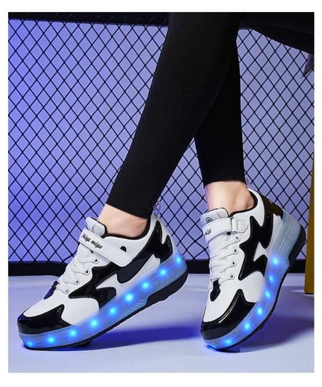 | ローラーは取り外しができるタイプで、付属の蓋をハメればスニーカーとしても使えます!おしゃれなシューズが一瞬でローラースケートに!ローラーの出し入れが可能な2WAYシューズ。 ローラースケートほど大掛かりでなく、気楽に履けるのでスーっと滑る感覚でスリルを味わえます! 初心者でも乗りやすい。前輪が補助輪となる2輪式ので、初心者の方でもすぐに楽しく滑れるようになります。 ローラーをしまえばおしゃれなシューズに早変わり!かかと部分のボタンをたったひと押しするだけで、ローラーの出し入れができるので操作が簡単! 足元が輝き、いつものお出掛けがもっと楽しくなりそう! 履きやすい設計で、通学はもちろんのこと、おでかけ用としても活躍してくれます。 | |