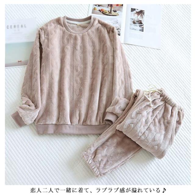 パジャマ 秋冬 長袖 レディース メンズ ペアパジャマ もこもこ カップル 上下セット ルームウェア ペアルック ギフト 結婚祝い 誕生日 プレゼント 男女兼用 暖かい 部屋着 セットアップ あったか 送料無料