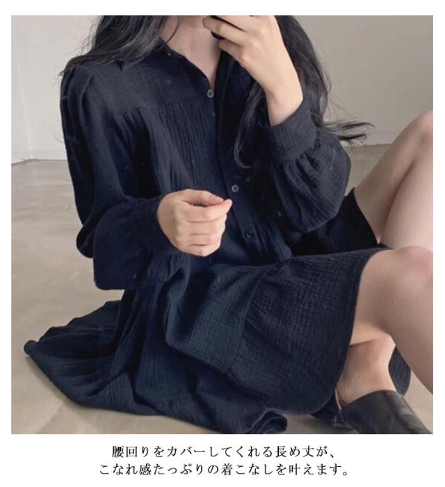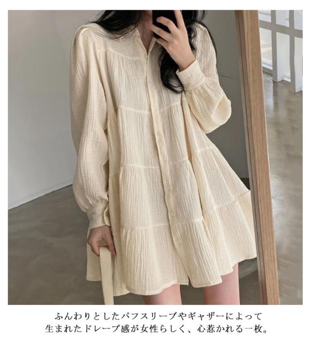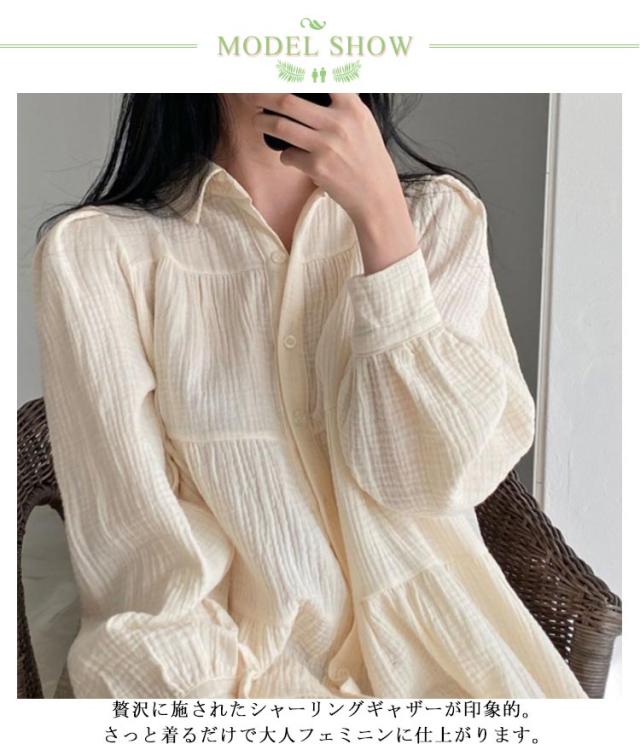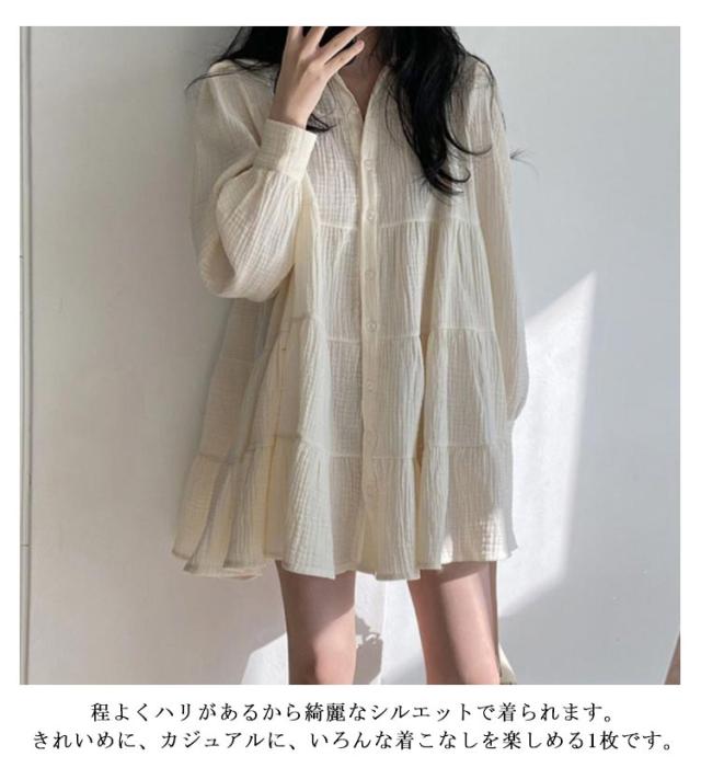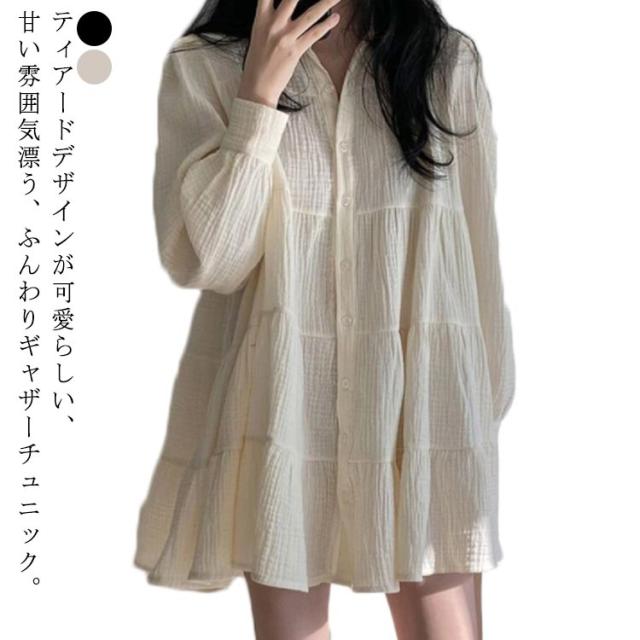 送料無料 ブラウス レディース トップス ロングシャツ チュニックシャツ 長袖 シャツ ティアード ギャザー ふんわり チュニック ワンピース ロング丈 膝上 長そで 無地 ワイド ゆったり 体型カバー ナチュラル 大人かわいい