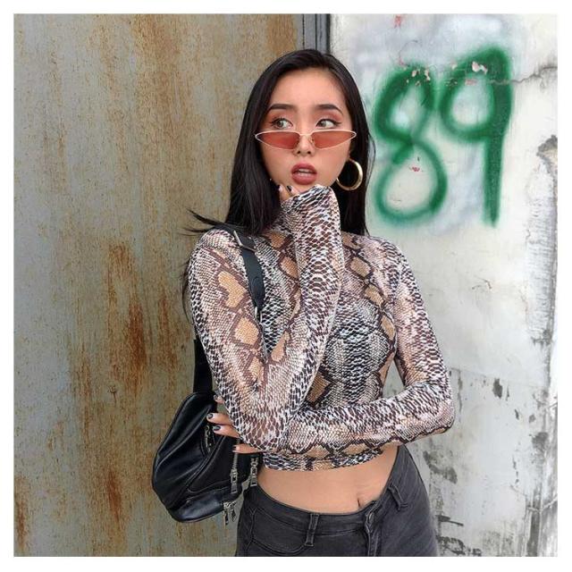 ロンt 長袖 ダンス衣装 ダンス 衣装トップス ショート丈 ハイネック レディース 韓国 ダンス 衣装 韓国 パイソン柄 ヘビ柄 蛇柄 派手 へそ出し ヒップホップ ストリート系 ファッション セクシー かっこいい シースルー
