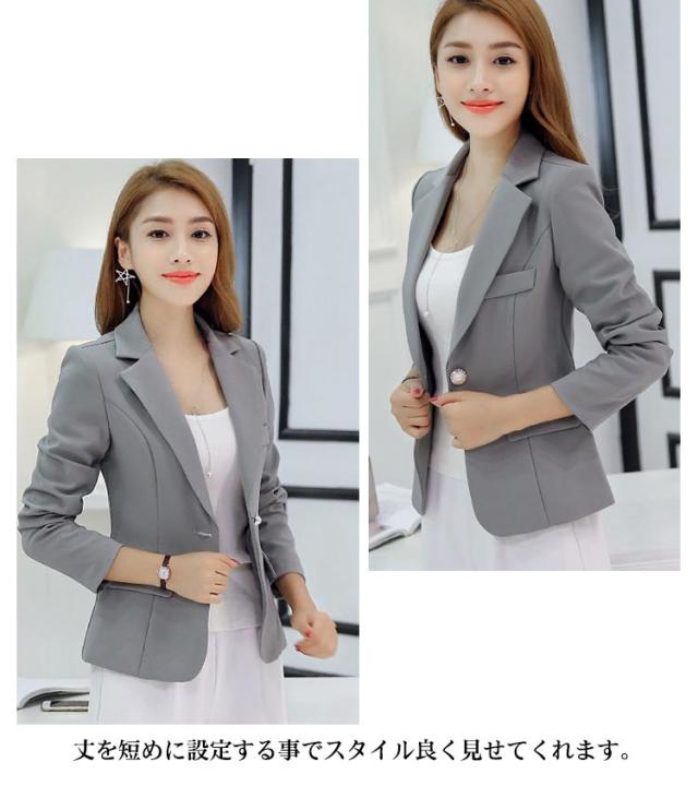 | 1つボタンのデザインなので、ウエストラインやお顔まわりもスッキリ、綺麗に見せてくれます。 立体裁断でより身体にフィットし、美シルエットをメイク◎ いつものコーデにプラスするだけで、華奢見え! ご自宅での手洗いはできるから、いつまでも清潔感をキープし、お財布にも優しい。 やや短めの丈とフィットな着心地がつくるシルエットは、とてもスマートで大人っぽい印象♪ 通勤やオフィスなどはもちろん、入学式や発表会などフォーマルシーンにも活躍。 | |
